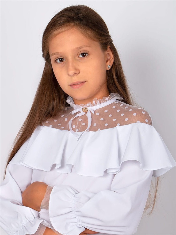 Модель: Блузка для девочки школьная нарядная белая 0202