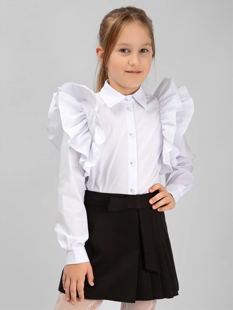 Состав: 100% хлопок Модель: Блузка для девочки SP021 белый Тип товара: блузка Материал: хлопок плательный | хлопок плательный Бренд: Соль&Перец Длина: средняя длина Карман: без карманов Назначение: для особых случаев Отделка: с манжетами | с воланами Рисунок: однотонные Рукав: длинный рукав Сезонность: лето | осень | весна | зима Силуэт: прямой Стиль: для школы | нарядный Воротник: рубашечный воротник Застежка: пуговицы Блузка для девочки СольПерец. Модель с декоративной отделкой, плечи украшены пышными воланами, планка с застежкой на пуговицы. Блузка отлично сочетается с брюками, юбками и сарафанами. Прекрасно подойдет для создания эффектного школьного образа. Таблица размеров и веса