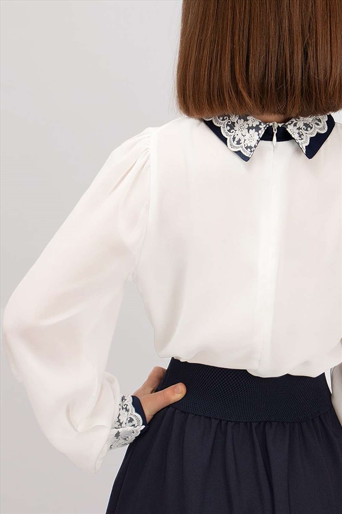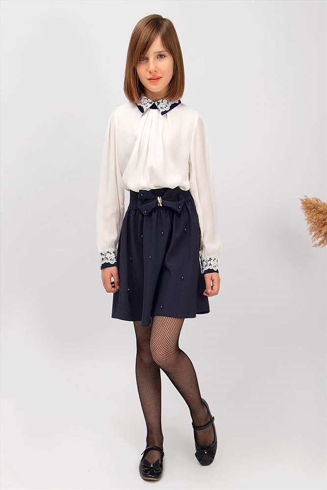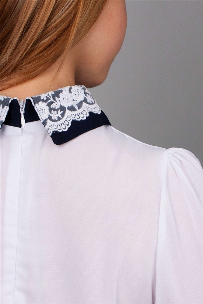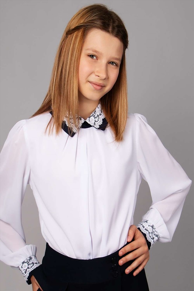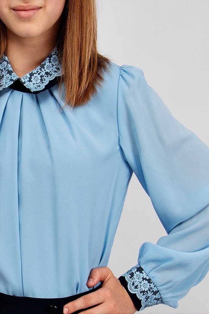 Застежка: молния Элегантная блузка свободного силуэта для девочки. Отложной воротник и манжеты на рукавах оформлены кружевным декором. На спине застежка - молния, передняя часть блузки с подкладом. Прекрасный выбор для создания красивого школьного образа. Размер 128-34 (рост 122-128 см) длина изделия 49 см, полуобхват груди 37 см, длина рукава 44 см. Размер 134-36 (рост 128-134 см) длина изделия 51 см, полуобхват груди 38 см, длина рукава 48 см. Размер 140-38 (рост 134-140 см) длина изделия 53 см, полуобхват груди 40 см, длина рукава 51 см. Размер 146-40 (рост 140-146 см) длина изделия 55 см, полуобхват груди 43 см, длина рукава 55 см. Размер 152-42 (рост 146-152 см) длина изделия 57 см, полуобхват груди 46 см, длина рукава 57 см.