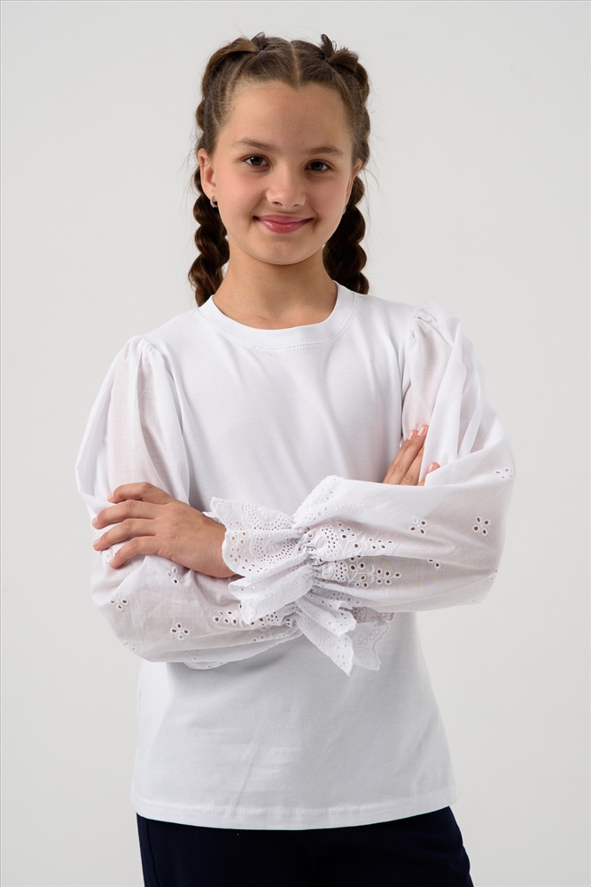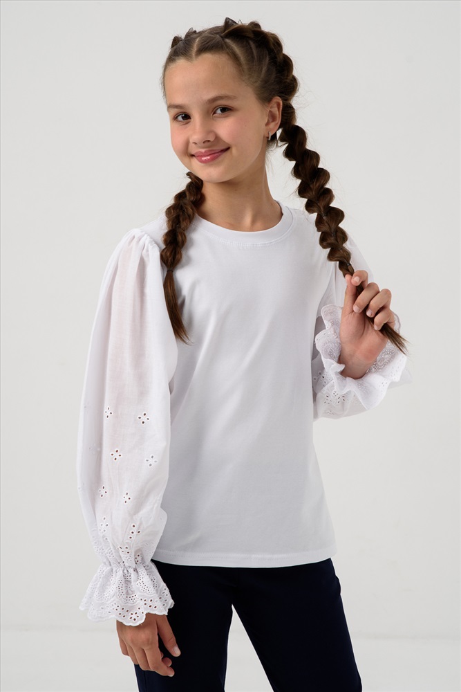 Состав: 92% хлопок 8% лайкра Модель: Блузка Евдокия длинный рукав Тип товара: блузка Материал: кулирка с лайкрой | кулирка с лайкрой Бренд: Мурлыка Карман: без карманов Отделка: с воланами Рисунок: однотонные Рукав: длинный рукав Сезонность: лето | осень | весна | зима Силуэт: прямой | свободный Стиль: для школы | нарядный | повседневный Воротник: без воротника Застежка: без застежки Школьная блузка с длинными, пышными рукавами, выполненными из хлопковой ткани шитье. Джемпер украсит и дополнит любой образ в школу. Красивый джемпер для девочек подростков на каждый день. Таблица размеров и веса
