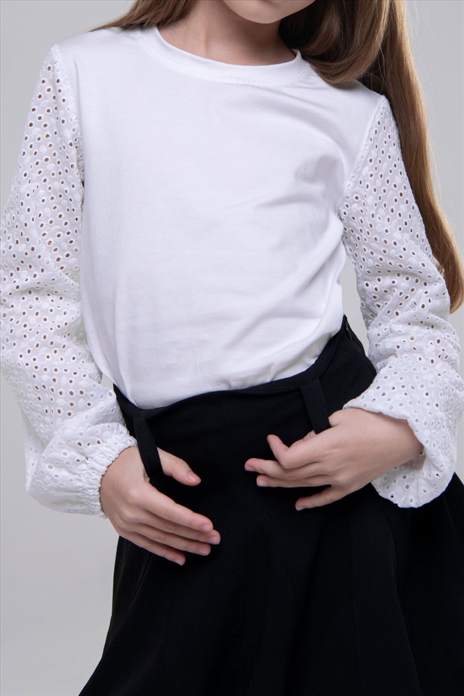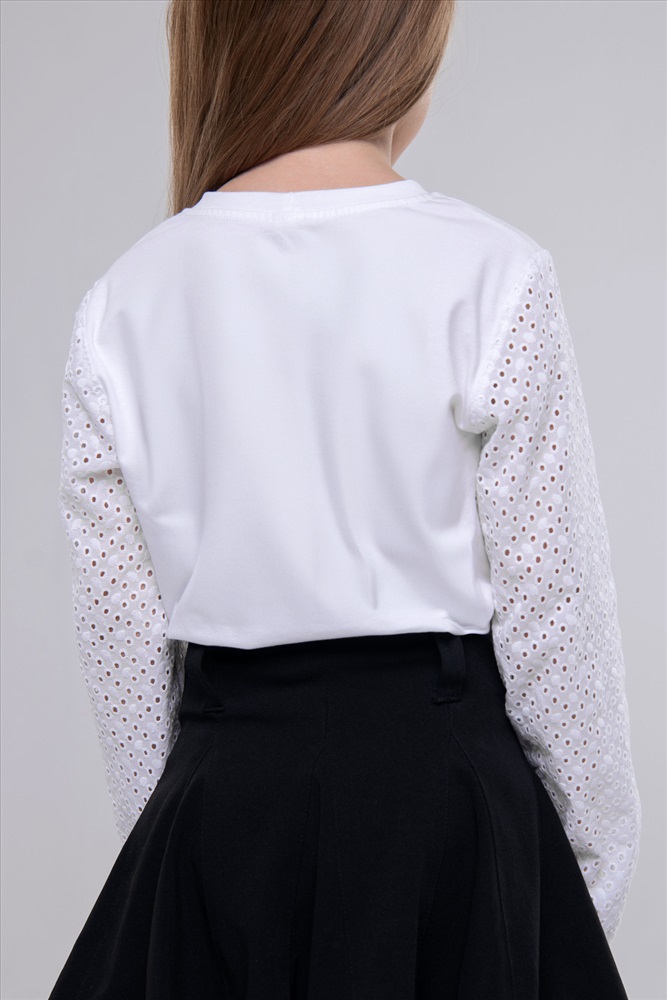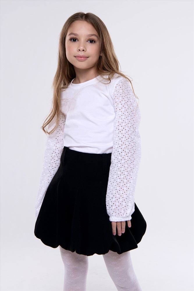 Состав: 95 Хб; 5 Л-кра ; Отд.100ХБ Модель: Блузка Евгения Тип товара: блузка Материал: кулирка с лайкрой | кулирка с лайкрой Бренд: Детский трикотаж 37 Карман: без карманов Особенности: на резинке Рисунок: однотонные Рукав: длинный рукав Сезонность: лето | осень | весна | зима Силуэт: прямой | свободный Стиль: для школы | повседневный Воротник: без воротника Застежка: без застежки Элегантная белая блузка с ажурными рукавами стильный выбор для школы и особых случаев. Удобная и изящная, она добавит утонченности любому образу. Таблица размеров и веса