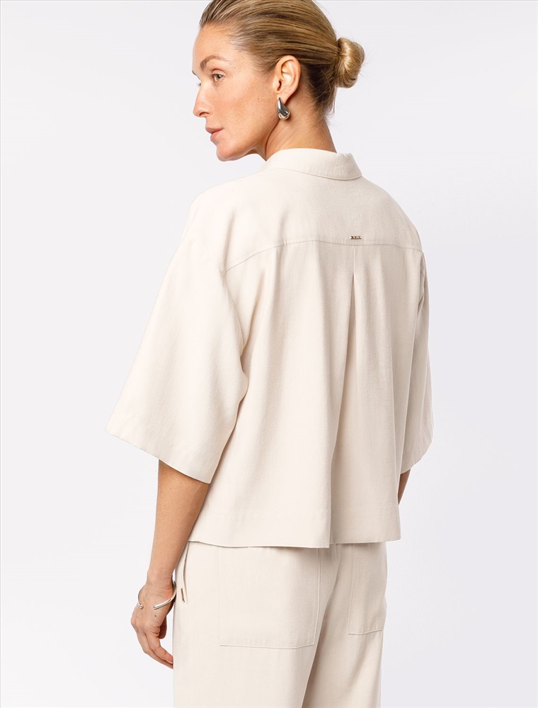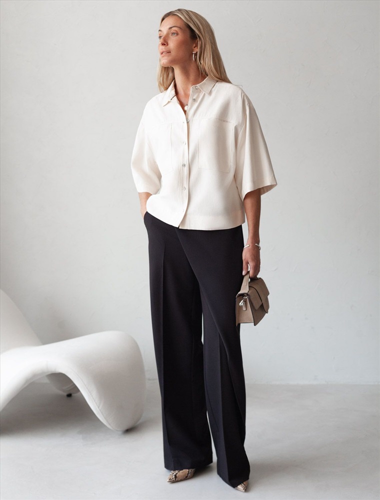 Параметры модели на первом фото: Рост 172, бюст 88, талия 64, бедра 88 Блузка выполнена из плотного лиоцелла. Свободная модель с застежеой на пуговицы. Ткань изделия отлично держит форму и не просвечивает. В теплое время года приятно охлаждает кожу. Добавление синтетических волокон в составе изделия, предотвращает сминаемостьи поддерживает формоустойчивость. Жилет сочетается в костюме с брюками D24.261, D24.267, D24.265, юбкой D24.261, D26.196, шортами D27.002. Комментарии к товару