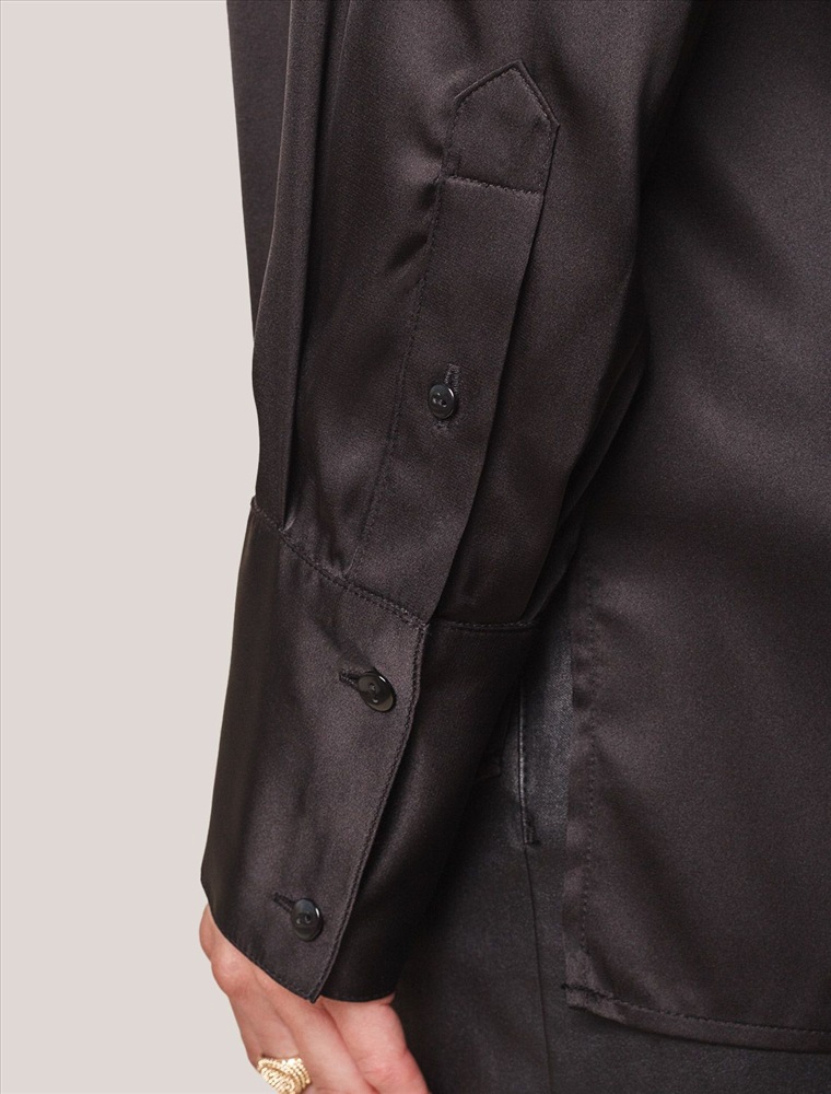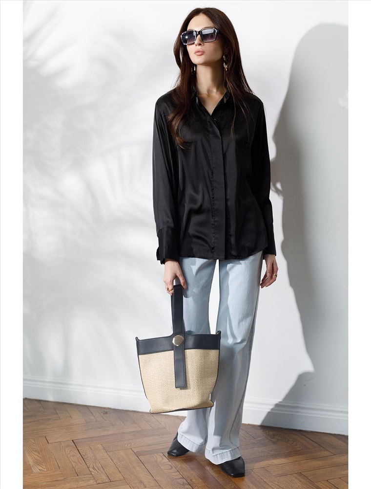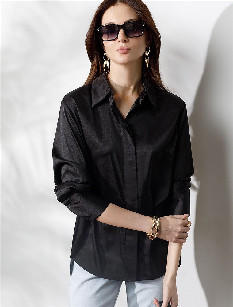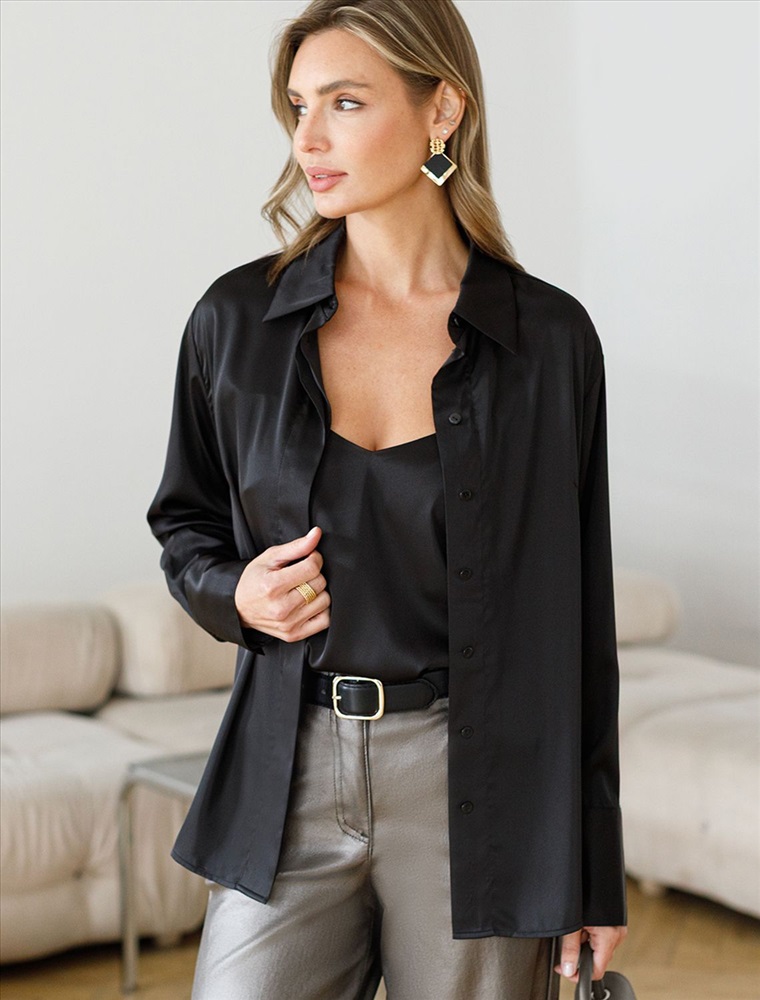 Плотность: 107 Г/м2 Параметры модели на первом фото: Рост 170, бюст 89, талия 63, бедра 92 Размер товара на первом фото: 42 Сатиновая блузка с эластаном в черном цвете – воплощение элегантности и комфорта. Благородный блеск сатина добавляет образу шика, а эластичность материала гарантирует удобство при носке. Прямой силуэт блузки обеспечивает комфорт, а эластичность материала предотвращает деформацию. Застежка-планка с потайными пуговицами придает модели аккуратность. Универсальный вариант для casual-образов. Комментарии к товару