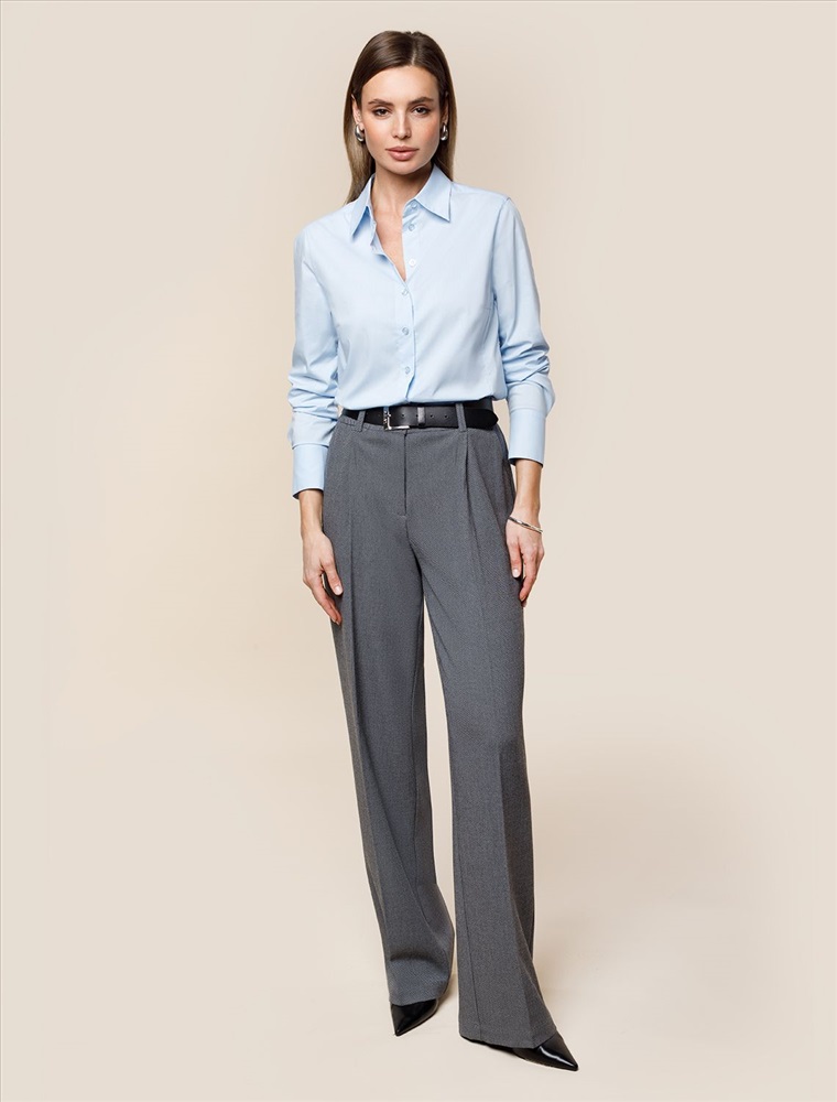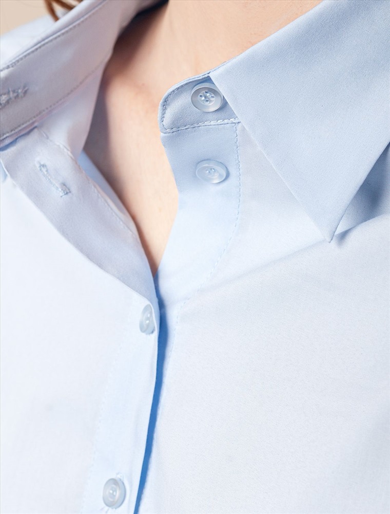 Блузка приталенного силуэта выполнена из эластичного хлопка. Безупречно сидит по фигуре не сковывая движений. Материал обладает высокой формоустойчивостью и воздухопроницаемостью, поддержвая оптимальный микроклимат в течении всего дня. Классический образ можно собрать в паре с черными прямыми брюками или юбкой с разрезами, повседневный расслабленный с джинсами или брюками с пу-покрытием.