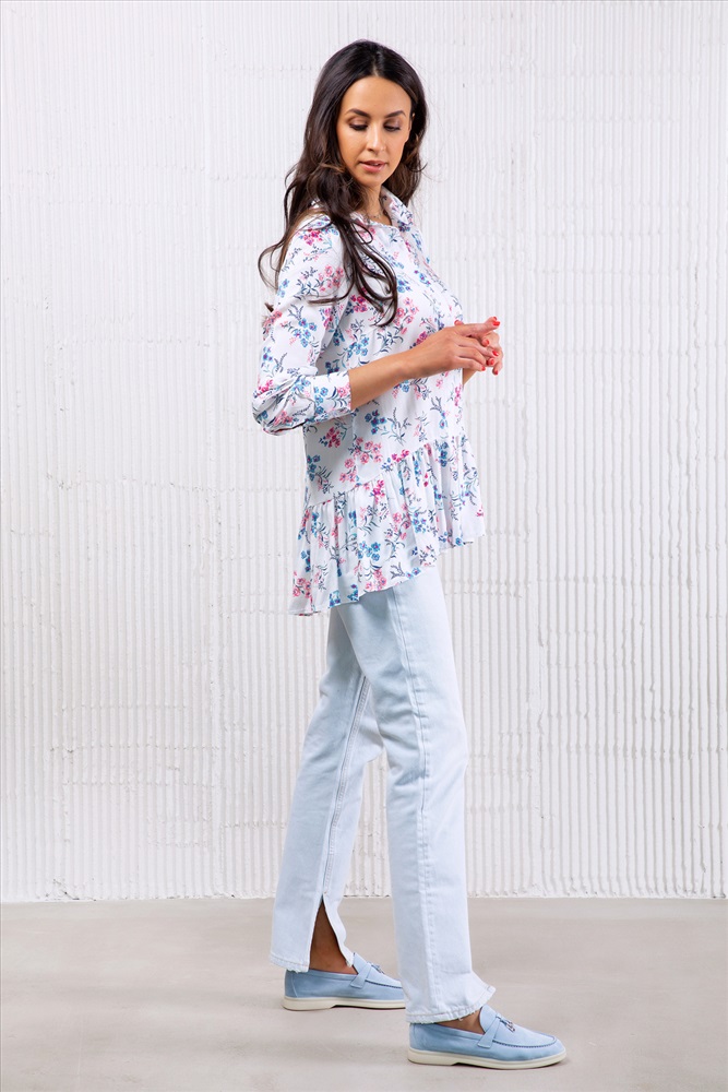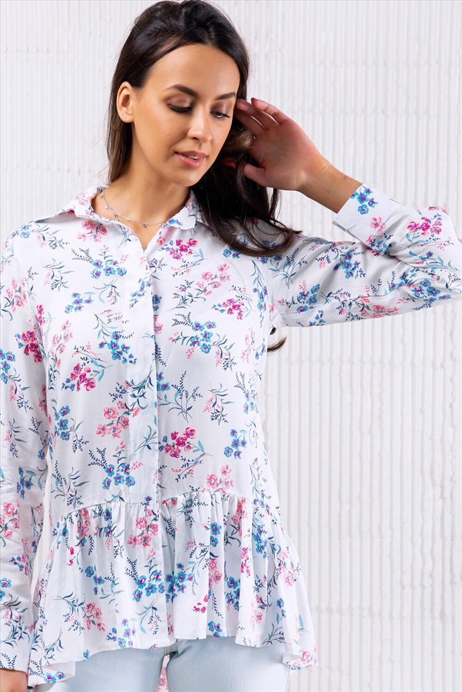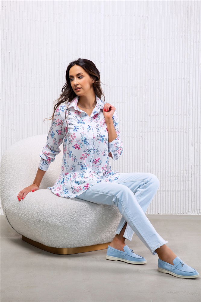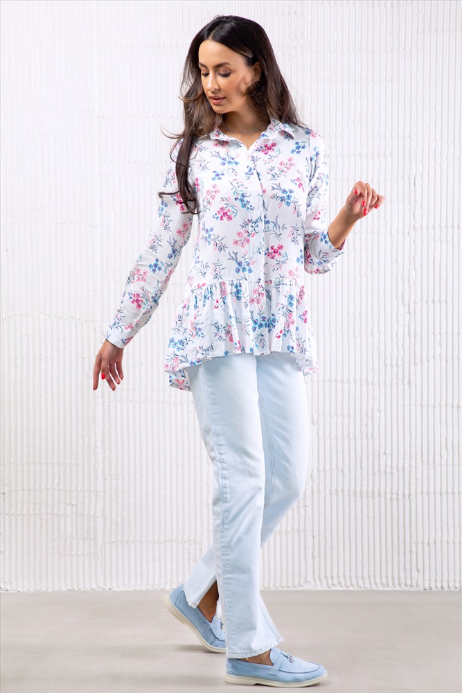 Блузка с длинным рукавом и баской 320WHT
