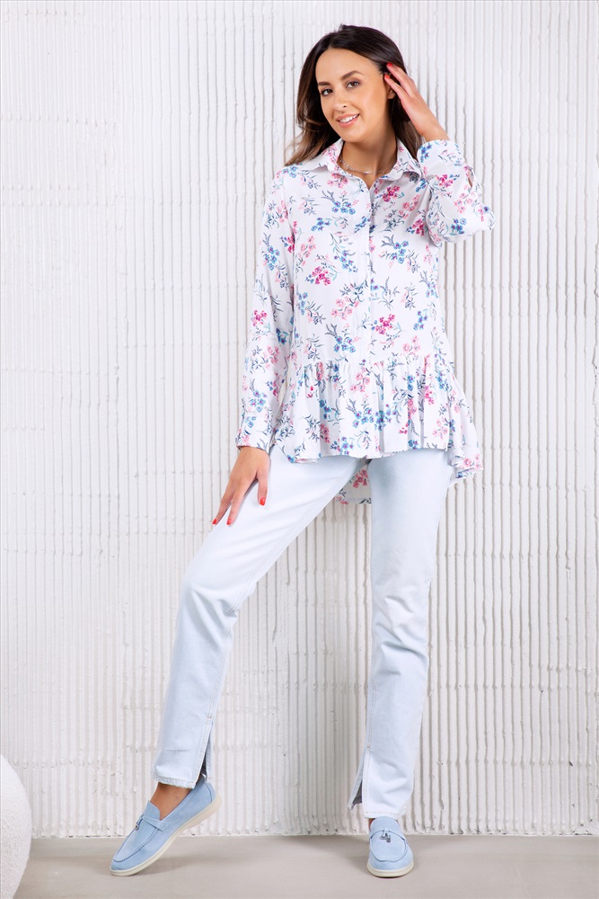 Модель: Блузка с длинным рукавом и баской 320WHT