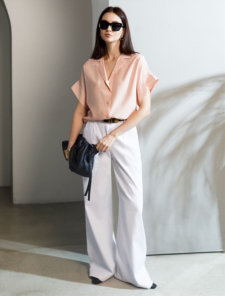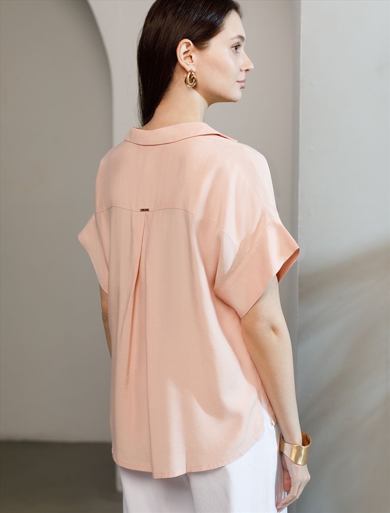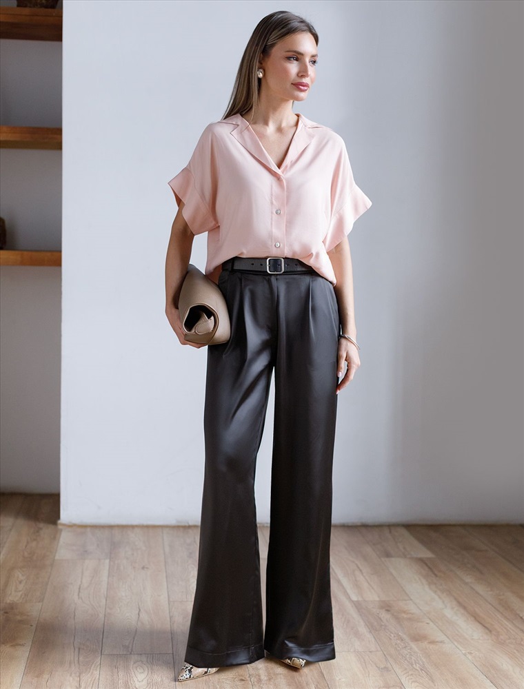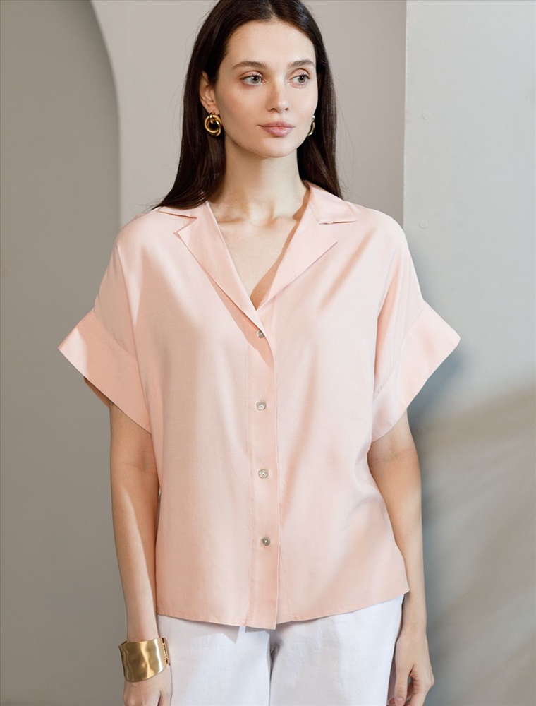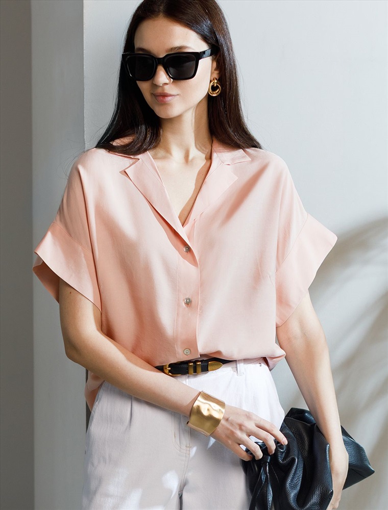 Плотность: 115 Г/м2 Блузка пудрового цвета сочетает в себе комфорт и элегантность благодаря материалу из вискозы с лиоцеллом. Аккуратный отложной воротник подчеркивает утонченность образа, а широкие короткие рукава привлекают внимание и делают силуэт современным. Спущенная линия плеча формирует расслабленный, но стильный внешний вид, что идеально для тех, кто ценит индивидуальность и уверенность в деталях. Крой продуман так, чтобы подчеркивать достоинства фигуры и на больших размерах, создавая гармоничный силуэт без лишних усилий. Ткань из вискозы с добавлением лиоцелла обеспечивает приятные ощущения и отличную посадку, струится на теле и охлаждает в жаркую погоду. При пошиве использована технология «чистый край» по всей длине центральной планки и низу изделия. Это признак премиум качества — «чистый край» вместо оверлока. Блузку можно носить с топом, не застегивая — при этом распахнутая блузка будет выглядеть максимально эстетично. Рубашка легко впишется как в деловой гардероб, так и в повседневный стиль, позволяя выглядеть безупречно независимо от ситуации. Комментарии к товару
