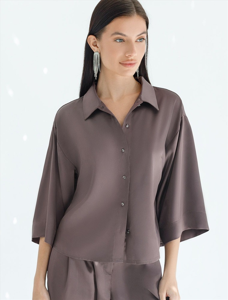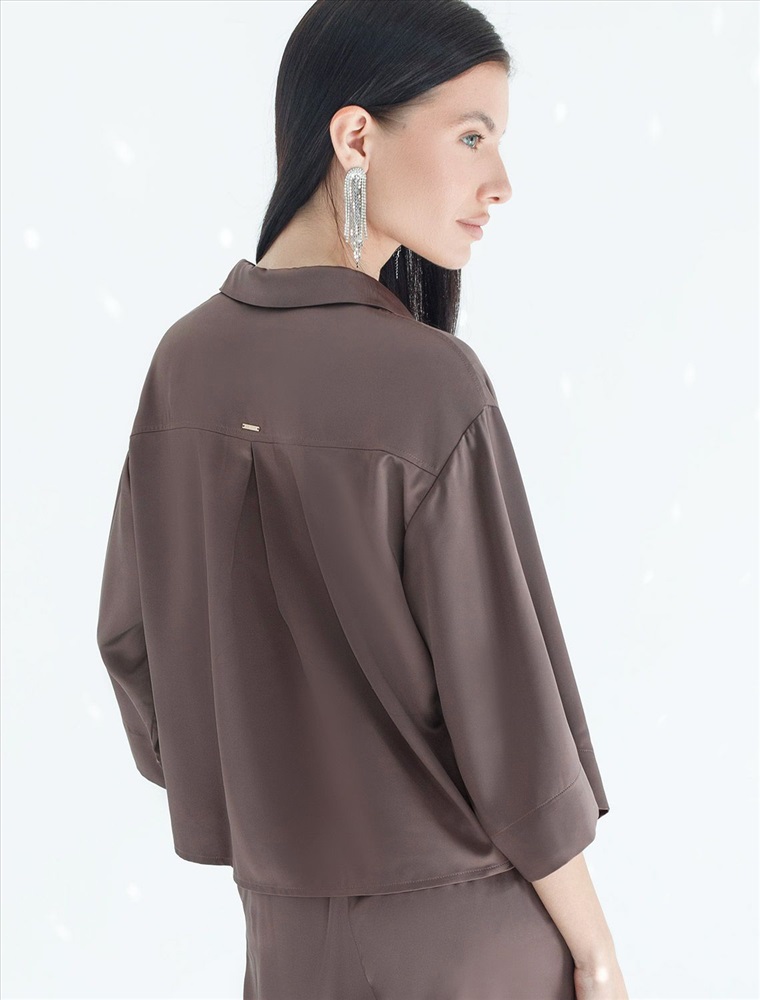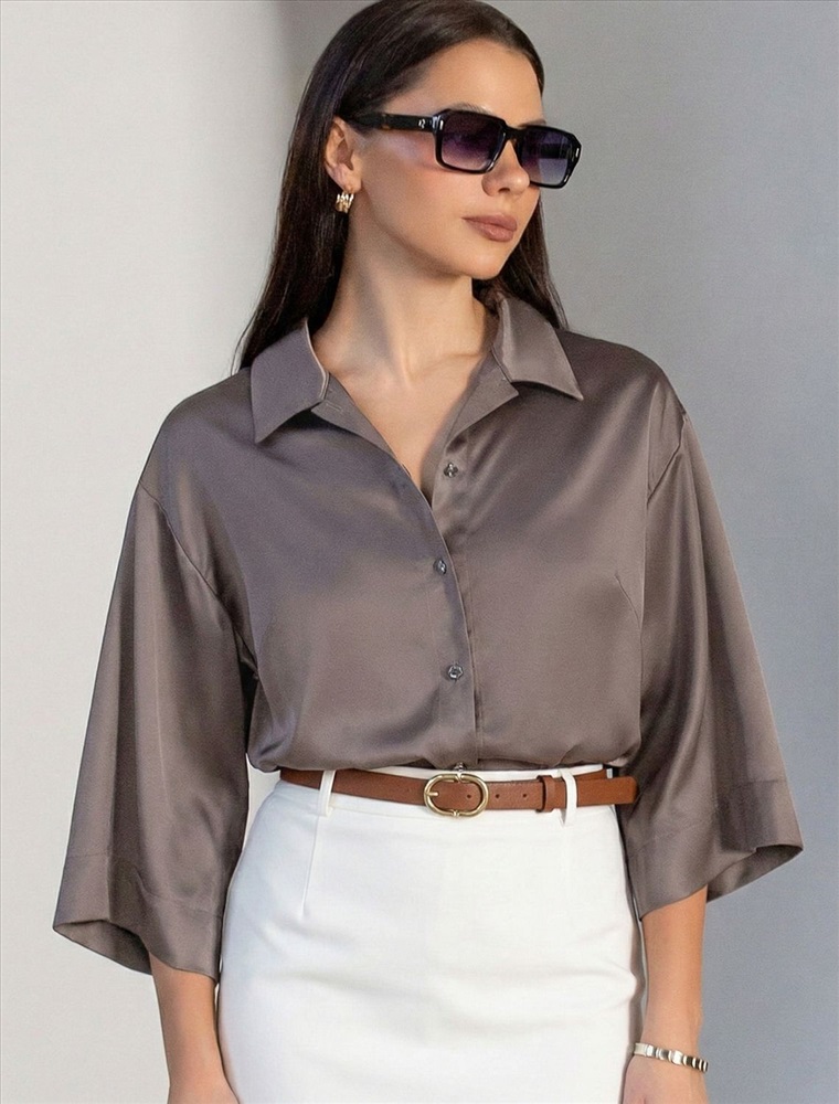 Плотность: 190 Г/м2 Элегантная блузка кофейного цвета на пуговицах выполнена из плотного струящегося сатина, который мягко ложится по фигуре и создает эффектную посадку. Отложной воротник придает образу женственную и изящную нотку. Материал отличается дышащей структурой, благодаря чему комфорт сохраняется даже в течение всего дня. Широкие рукава обеспечивают свободу движений и подходят для полных рук, делая блузку универсальной для разных типов фигур, в том числе для больших размеров. Красивая гладкая фактура материала подчеркивает утонченность изделия, добавляя легкое сияние к любому образу. Благодаря продуманному крою эта рубашка смотрится стильно как в повседневной жизни, так и на особых мероприятиях. Ткань практична, она приятна на ощупь, легко ухаживается и долго сохраняет первоначальный вид даже после многократных стирок и активной носки. Блузка с короткими рукавами станет отличным выбором для создания элегантного и практичного образа, блузка удобна для повседневного ношения в любое время года. Для женщин, которые ценят практичность и стиль, эта стильная блузка станет незаменимой в гардеробе. Она органично впишется в деловой дресс-код и подчеркнет индивидуальность на торжестве. Комментарии к товару
