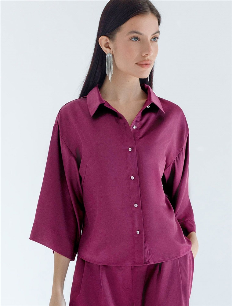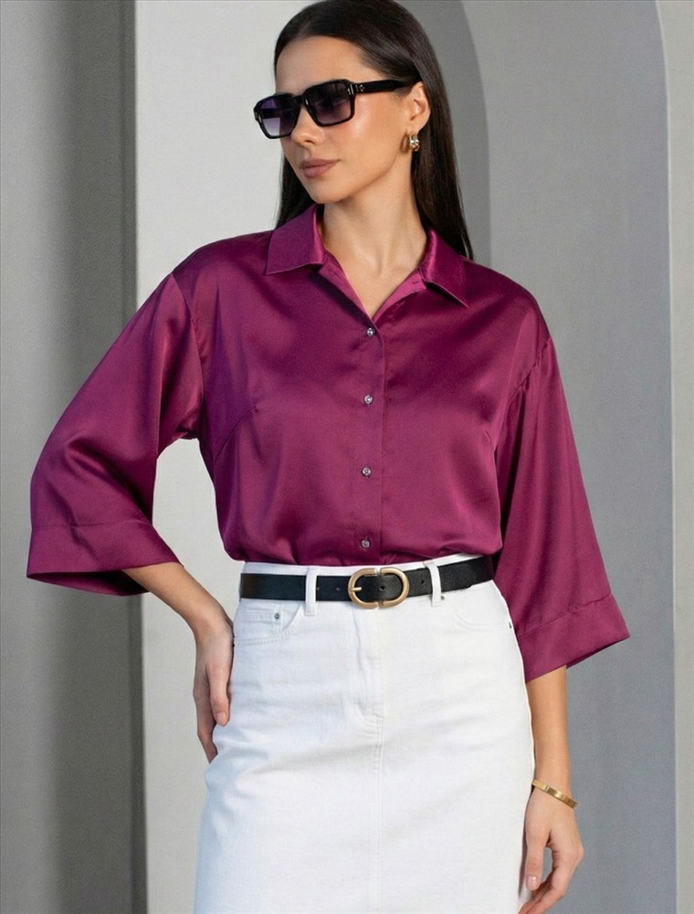 Плотность: 190 Г/м2 Элегантная блузка цвета бургунди на пуговицах выполнена из плотного струящегося сатина, который мягко ложится по фигуре и создает эффектную посадку. Отложной воротник придает образу женственную и изящную нотку. Материал отличается дышащей структурой, благодаря чему комфорт сохраняется даже в течение всего дня. Широкие рукава обеспечивают свободу движений и подходят для полных рук, делая блузку универсальной для разных типов фигур, в том числе для больших размеров. Красивая гладкая фактура материала подчеркивает утонченность изделия, добавляя легкое сияние к любому образу. Благодаря продуманному крою эта рубашка смотрится стильно как в повседневной жизни, так и на особых мероприятиях. Ткань практична, она приятна на ощупь, легко ухаживается и долго сохраняет первоначальный вид даже после многократных стирок и активной носки. Блузка с короткими рукавами станет отличным выбором для создания элегантного и практичного образа, блузка удобна для повседневного ношения в любое время года. Для женщин, которые ценят практичность и стиль, эта стильная блузка станет незаменимой в гардеробе. Она органично впишется в деловой дресс-код и подчеркнет индивидуальность на торжестве. Комментарии к товару