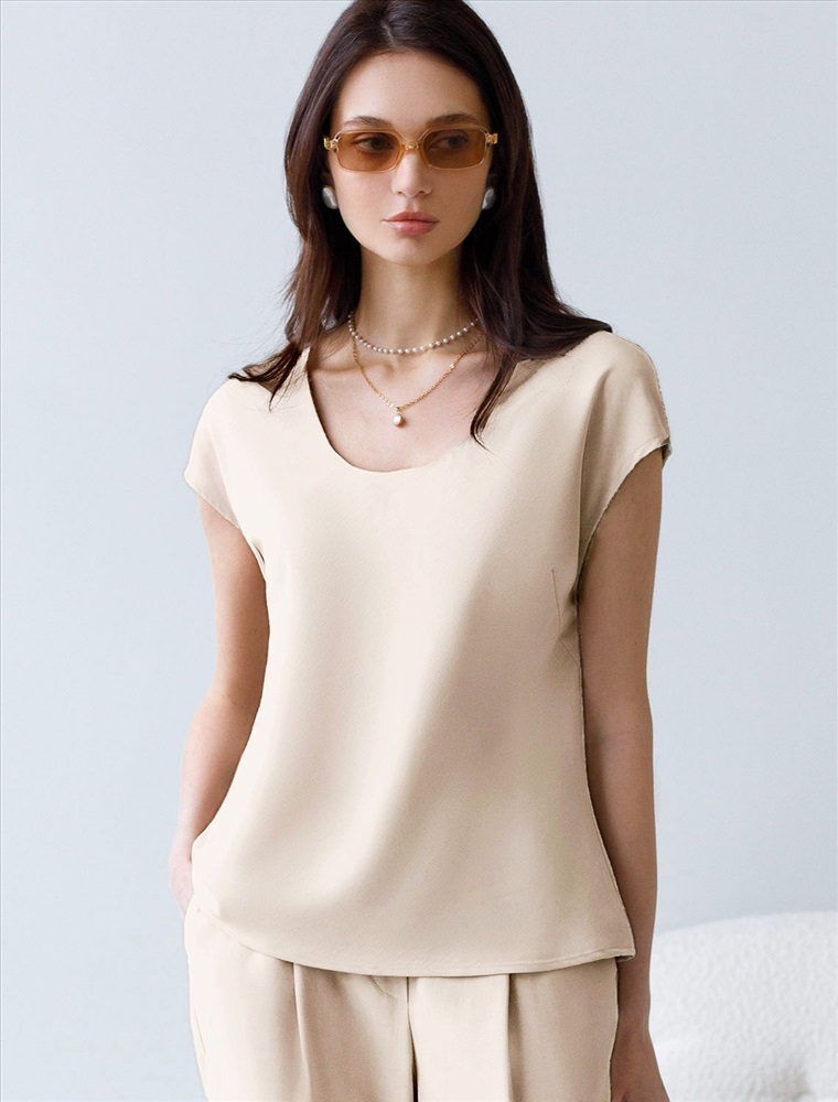 Элегантная блузка кокосово-молочного цвета скроенная по косой выполнена из плотного лиоцелла. Лиоцелл это более дорогой и экологичный вариант вискозы, очень прочный и шелковистый. Эта повседневная блузка с трендовым U-вырезом создана для легкого и утонченного стиля. Мягкие линии кроя создают невероятно эффектный образ, который подчеркивает естественную красоту, не стесняя движений, а свободный фасон дарит ощущение абсолютного комфорта и уверенности. Блузка красиво драпируется при движении, создавая летящий, воздушный эффект. Эта легкая блуза с коротким рукавом идеальный выбор для комфорта и стиля в теплое время года, она будет идеальна для любого повода.