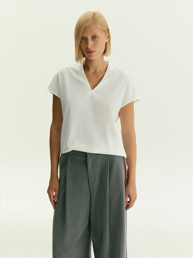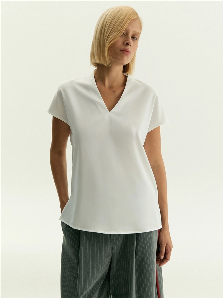 Блузка с V-образным вырезом, B2781/snowdrop