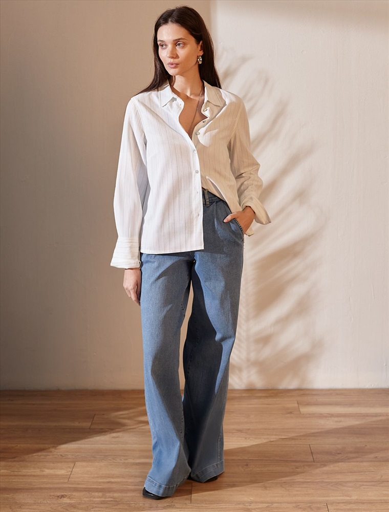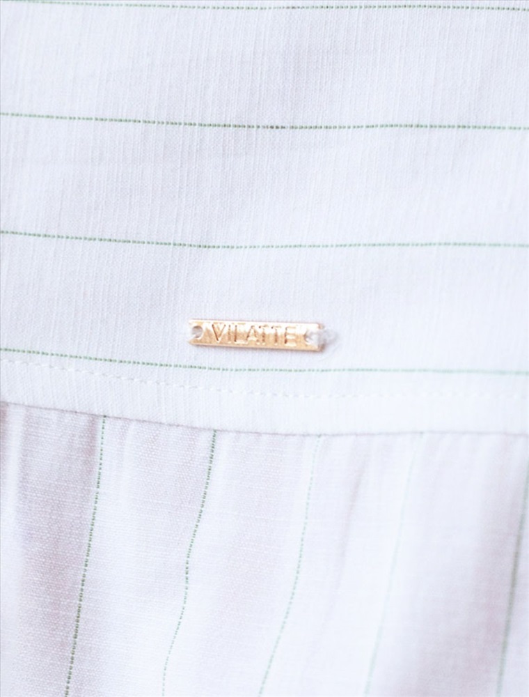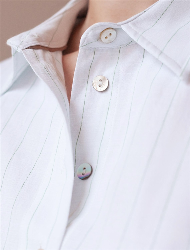 Блузка свободного силуэта белого цвета в светло-оливковую полоску из хлопка с добавлением льна идеально подходит для теплого сезона и порадует всех, кто ценит комфорт и стиль. Натуральный материал плотностью 104 Г/м2 обеспечивает приятное ощущение на теле и хорошо пропускает воздух, что особенно важно летом и весной. Блузка с длинным рукавом обладает высокой износостойкостью, что позволяет сохранять привлекательный внешний вид даже при регулярном использовании. Ткань хорошо держит форму после стирки и надолго остается аккуратной. Эластан в составе обеспечивает отличную посадку на любую фигуру. Классическая рубашка с отложным воротником и широкими манжетами формирует актуальный образ, подходящий как для работы, так и для повседневных прогулок. Пуговицы на планке добавляют практичности и позволяют регулировать степень открытости, что также способствует созданию различных вариантов ношения, например, в качестве второго слоя. Прямой свободный крой рубашки не сковывает движения и создает ощущение легкости, а принт в полоску делает образ выраженным, современным и подчеркивает индивидуальность. Повседневная блузка гармонично сочетается с любыми низами, что делает ее универсальной частью гардероба.