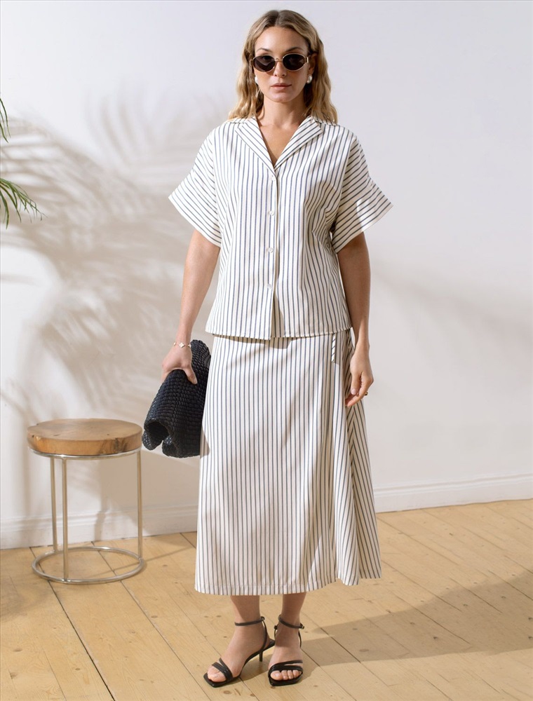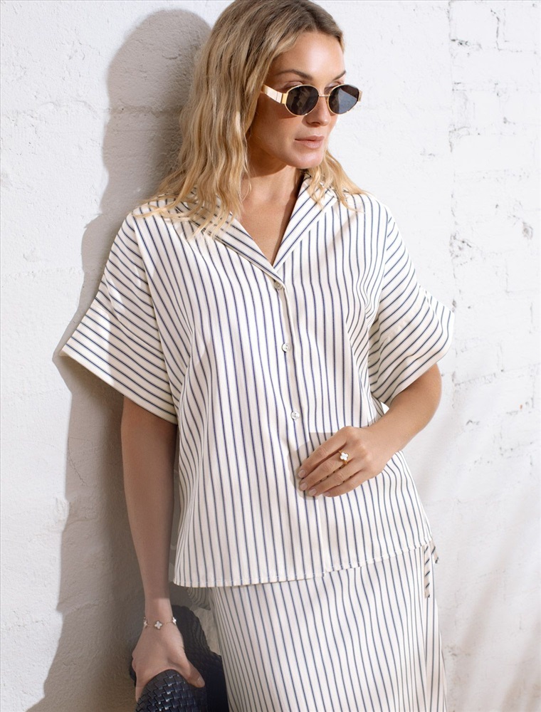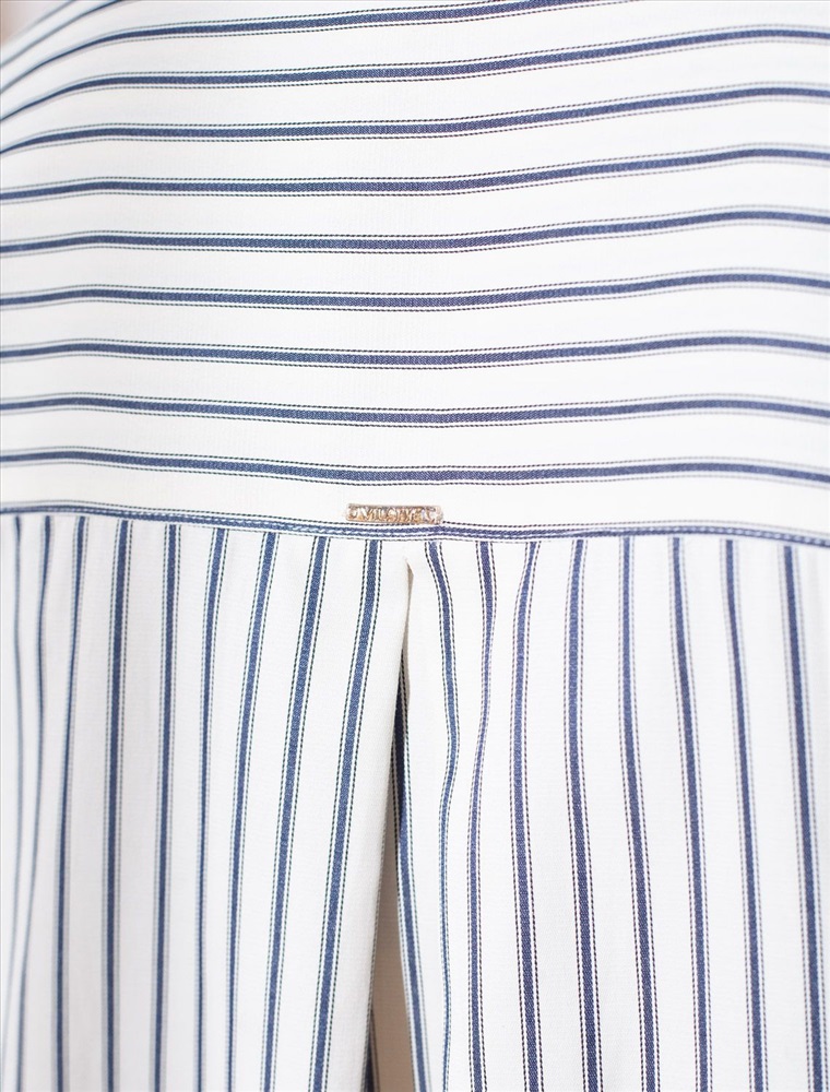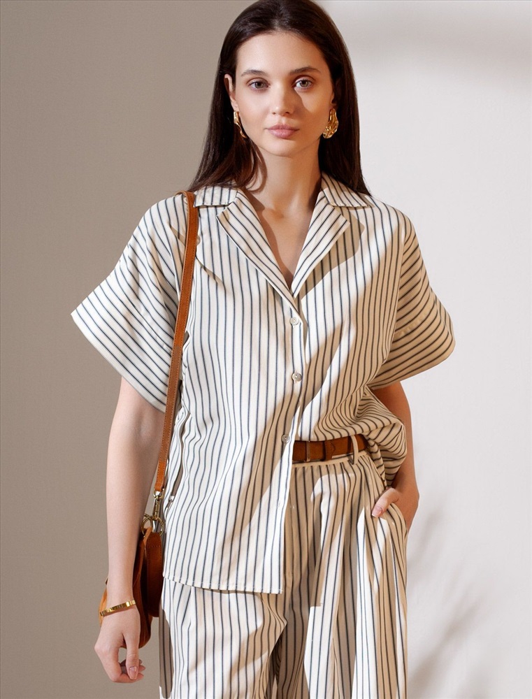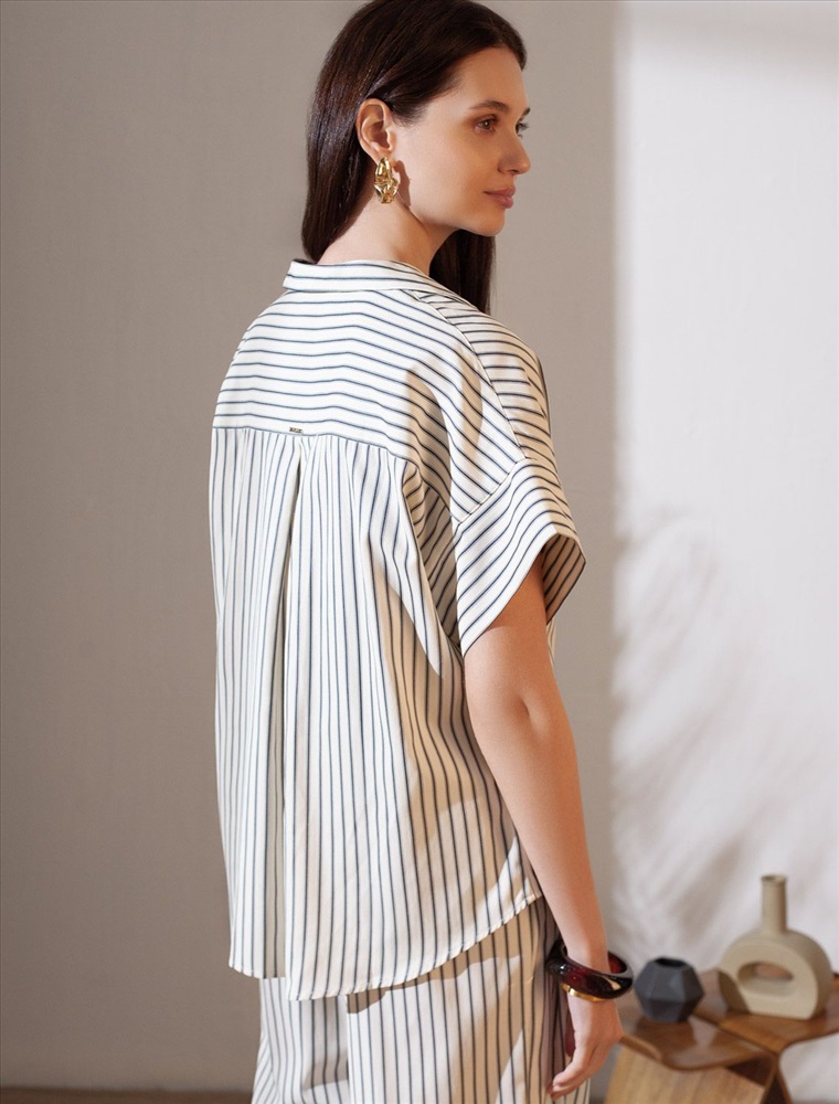 Плотность: 112 Г/м2 Стильная блузка молочно-синего цвета в полоску с коротким рукавом выполнена из легкого хлопкового поплина плотностью 112 Г/м2. Летняя модель идеально подходит на теплое время года и жаркую погоду. Натуральный состав ткани обладает высокой воздухопроницаемостью, а также способностью поглощать и отдавать влагу. В повседневной свободной блузке будет очень комфортно, благодаря правильной регуляции температуры тела. Удачнный крой, отложной воротничок и принт в полоску визуально вытяговают силуэт и помогают скрывать возможные недостатки фигуры. Цельнокроеные короткие рукава добавляют удобства и легкости, оставляя комфорт на высшем уровне. Такая рубашка отлично впишется в деловой гардероб и подчеркнет вашу уверенность на любом мероприятии. Этот фасон выделяется своей универсальностью, позволяя легко создавать образы для разных ситуаций. Если хотите выглядеть стильно и при этом чувствовать себя комфортно, этот выбор будет идеальным решением. Рекомендуем сочетать с артикулами: D24.298, D26.207 Комментарии к товару