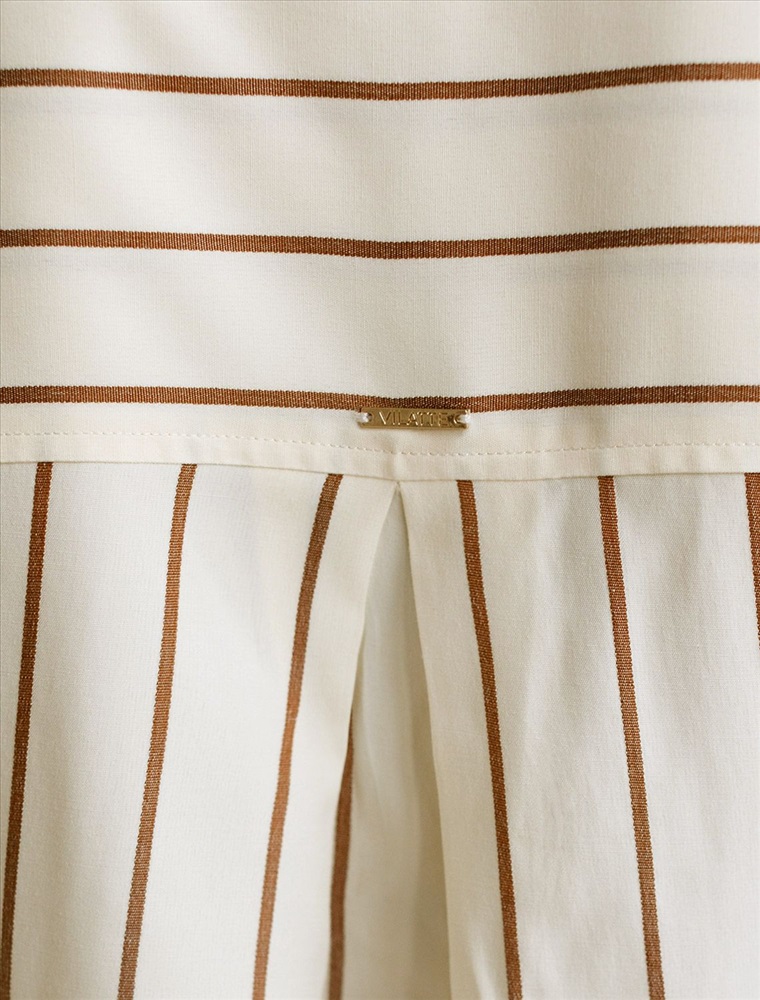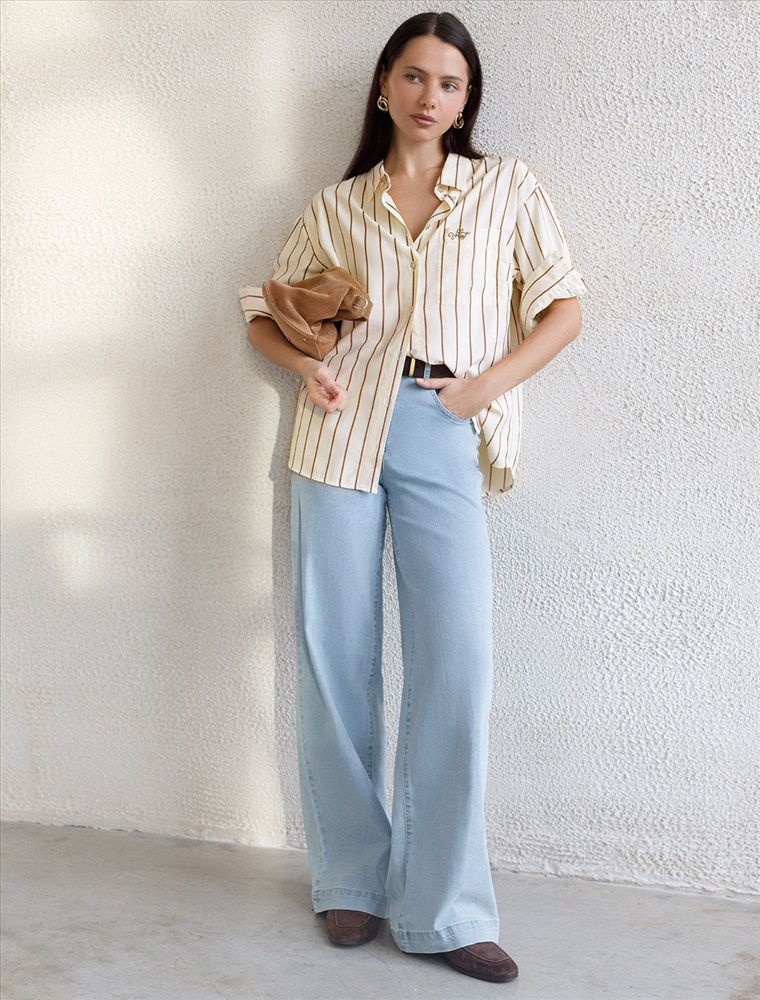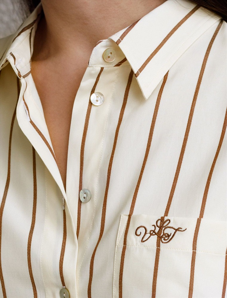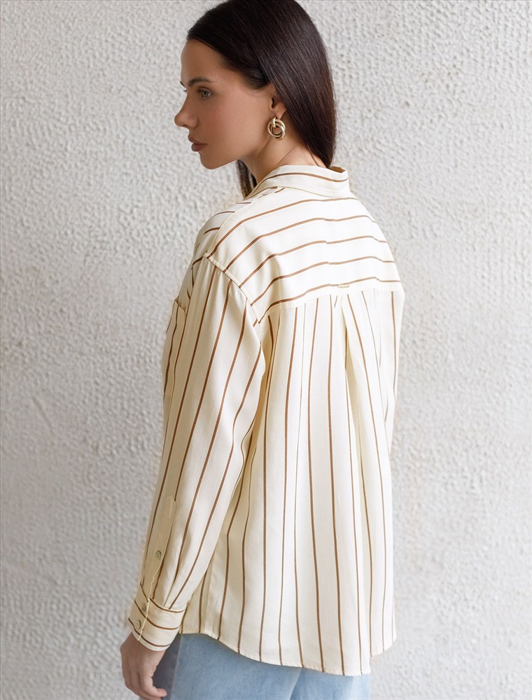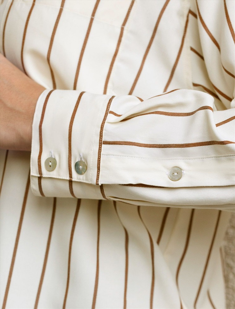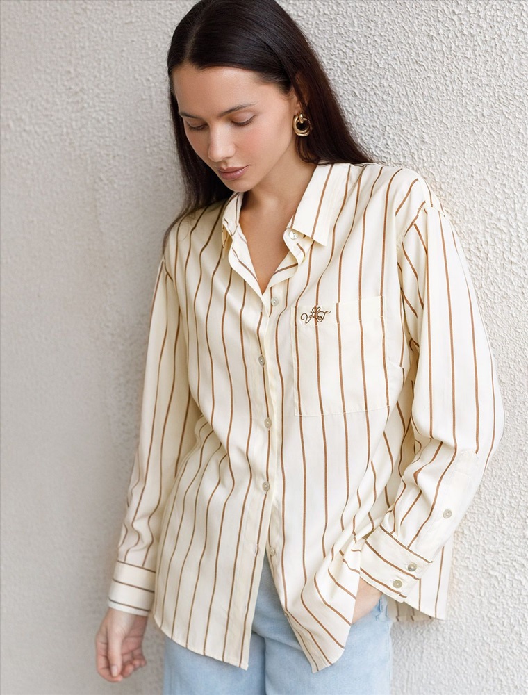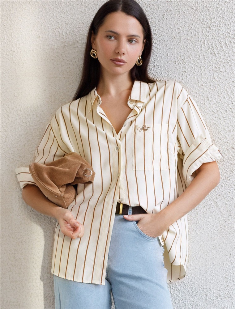 Плотность: 108 Г/м2 Блузка светло-бежевого цвета в кофейную полоску свободного силуэта отлично подходит для повседневной носки и создания стильных образов. Благодаря хлопку с добавлением эластана ткань хорошо дышит, освежает и подходит для работы даже в жаркое время года. Натуральный материал плотностью 108 Г/м2 не просвечивает и выглядит аккуратно даже после многочисленных стирок. Рубашка отличается удлиненной спинкой, что удобно для разных вариантов сочетания одежды. Карман на груди добавляет функциональности и практичности. Деликатная вышивка на кармане в виде логотипа бренда выглядит изысканно. Принт в полоску визуально вытягивает силуэт, подчеркивая индивидуальность и добавляя стильный акцент. Классический крой блузки и базовая цветовая гамма позволяют вписать эту вещь в любой гардероб, независимо от выбранного стиля — будь то офисная атмосфера или расслабленный выход на прогулку. Отложной воротник аккуратно подчеркивает фигуру и придает образу завершенность. Застежка на пуговицы обеспечивает комфортную регулировку и удобство в использовании. Универсальный фасон рубашки хорошо смотрится на любые размеры, в том числе и большие, скрывает недостатки и выгодно подчеркивает достоинства фигуры. Комментарии к товару