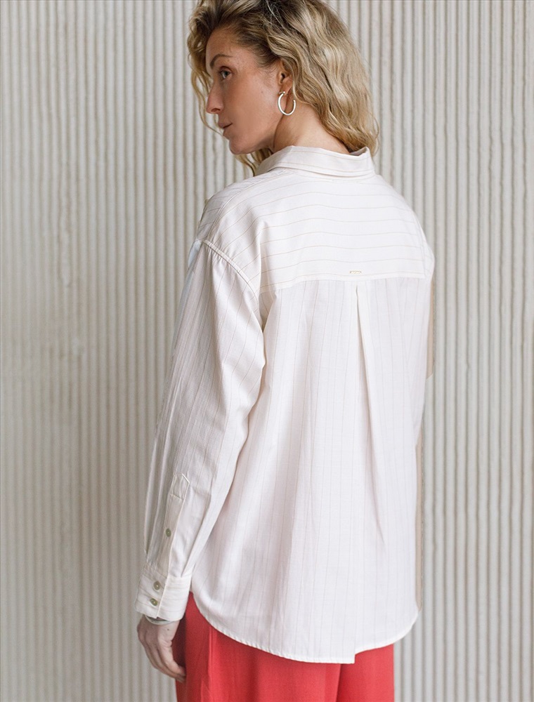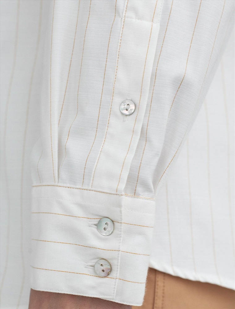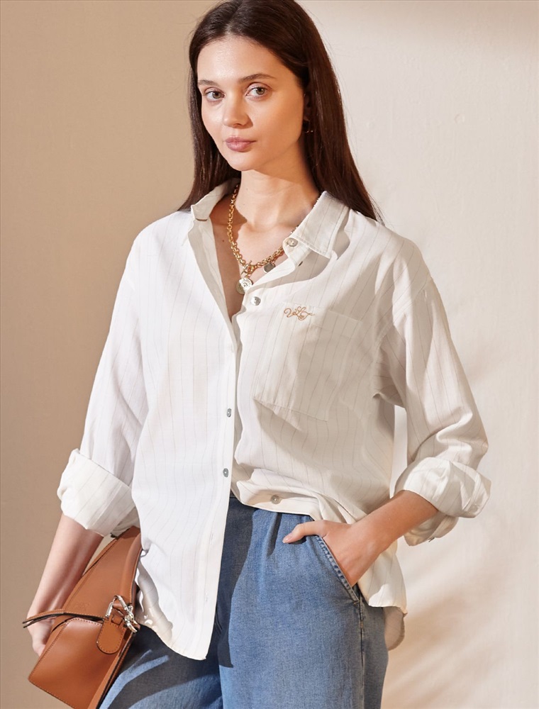 Плотность: 104 Г/м2 Блузка молочного цвета в бежевую полоску свободного силуэта отлично подходит для повседневной носки и создания стильных образов. Благодаря хлопку с добавлением льна ткань хорошо дышит, освежает и подходит для работы даже в жаркое время года. Натуральный материал плотностью 104 Г/м2 не просвечивает и выглядит аккуратно даже после многочисленных стирок. Рубашка отличается удлиненной спинкой, что удобно для разных вариантов сочетания одежды. Карман на груди добавляет функциональности и практичности. Деликатная вышивка на кармане в виде логотипа бренда выглядит изысканно. Принт в полоску визуально вытягивает силуэт, подчеркивая индивидуальность и добавляя стильный акцент. Классический крой блузки и базовая цветовая гамма позволяют вписать эту вещь в любой гардероб, независимо от выбранного стиля — будь то офисная атмосфера или расслабленный выход на прогулку. Отложной воротник аккуратно подчеркивает фигуру и придает образу завершенность. Застежка на пуговицы обеспечивает комфортную регулировку и удобство в использовании. Универсальный фасон рубашки хорошо смотрится на любые размеры, в том числе и большие, скрывает недостатки и выгодно подчеркивает достоинства фигуры. Комментарии к товару