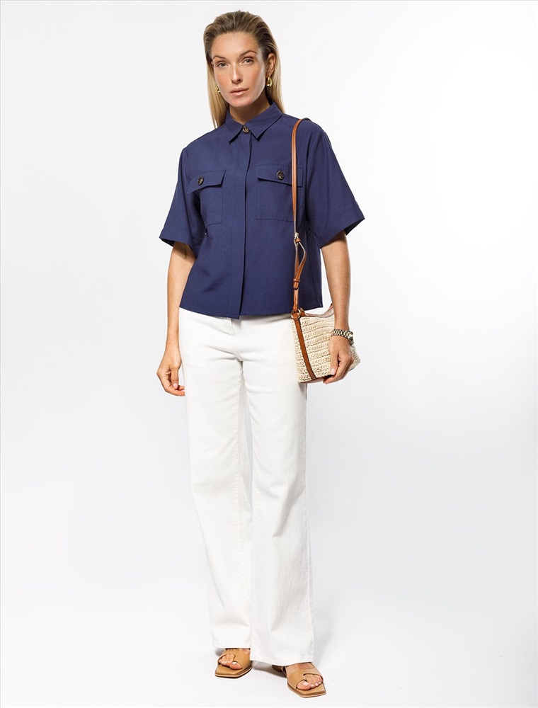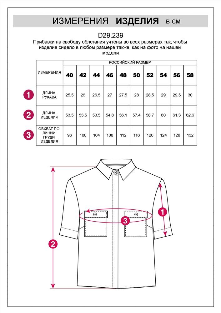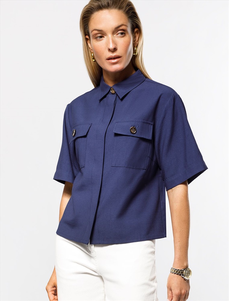 Блузка выполнена из плотного лиоцелла. Модель дополнена накладными карманами в стиле сафари. Застежка-планка на черепаховые пуговицы. Добавление синтетических волокон в составе изделия предотвращает сминаемость. Для создания завершенного образа, сочетайте в костюме с шортами D28.054, брюками D24.214, D24.218 и юбкой D26.181