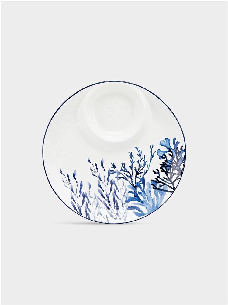 Блюдо, 32 см, керамика К, белое, круглое, Синие кораллы, Blue Coral. Материал: керамика каменная. Мыть тёплой водой с применением жидких моющих средств и в посудомоечной машине. Можно использовать в СВЧ.