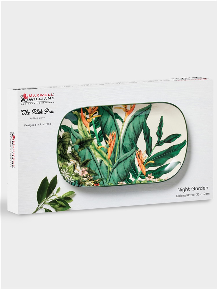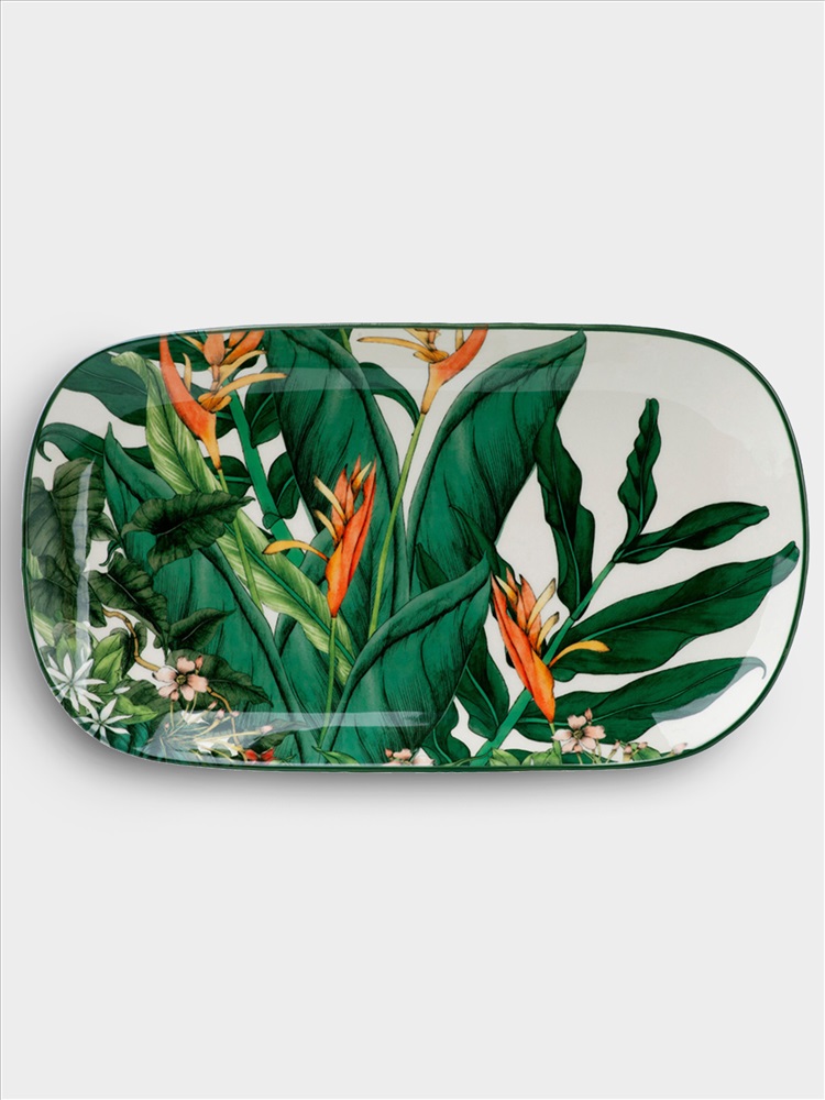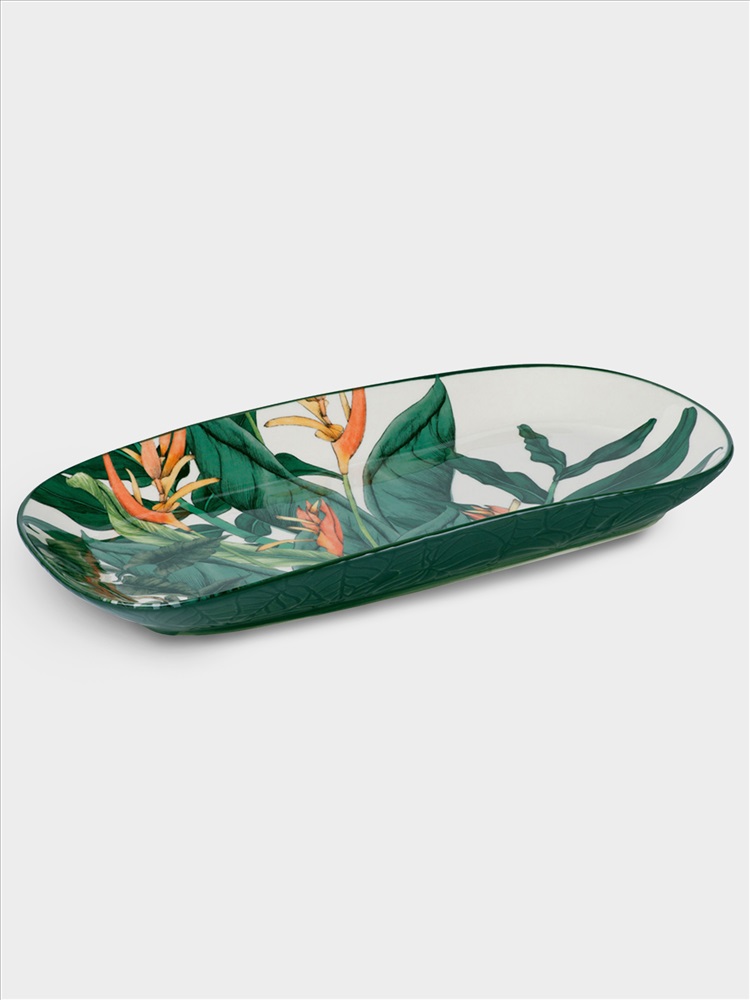 Блюдо, 35х19 см, керамика К, овальное, бело-зеленое, Ночной сад, Night Garden Foliage. Материал: керамика каменная. Мыть тёплой водой с применением жидких моющих средств и в посудомоечной машине. Можно использовать в СВЧ.