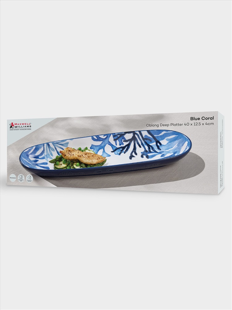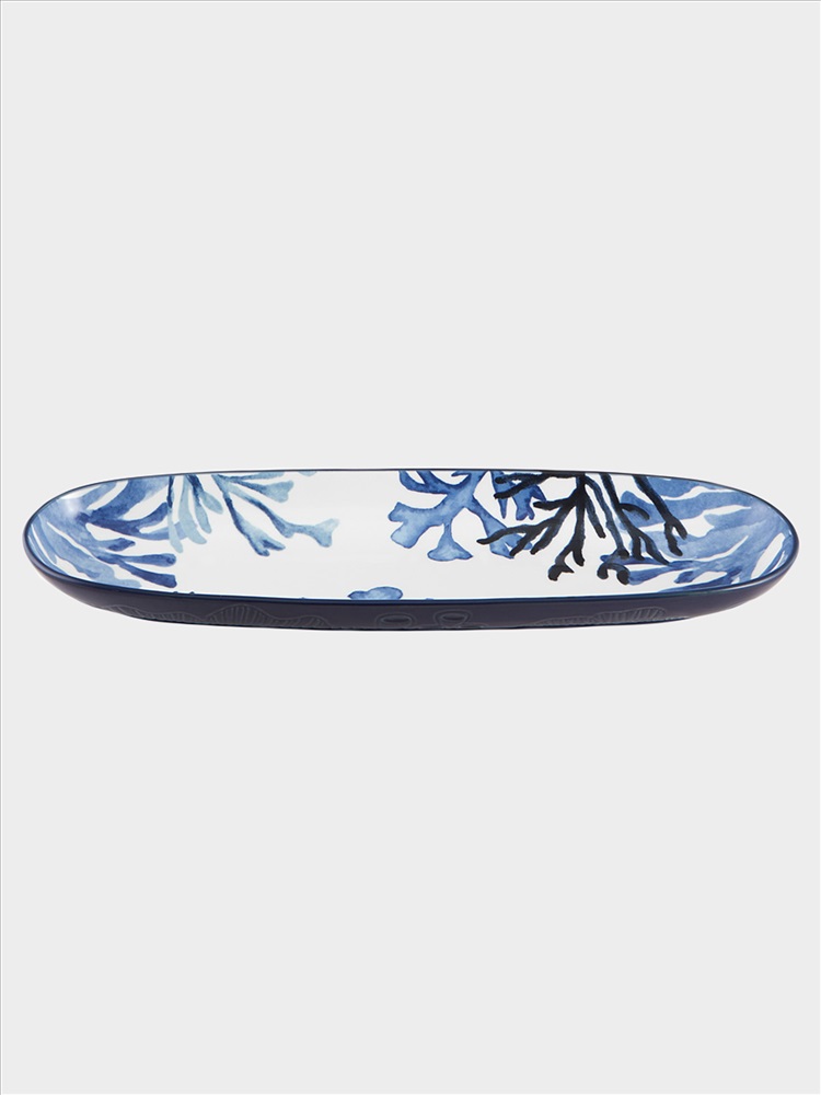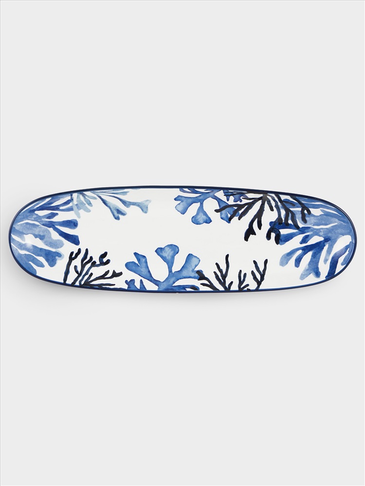 Блюдо, 40х12,5 см, керамика К, белое, овальное, Синие кораллы, Blue Coral. Материал: керамика каменная. Подходит для использования в СВЧ. Рекомендуется мыть вручную с применением мягких моющих средств. Не использовать для ухода абразивные чистящие средства и жесткие губки. Можно мыть в посудомоечной машине.