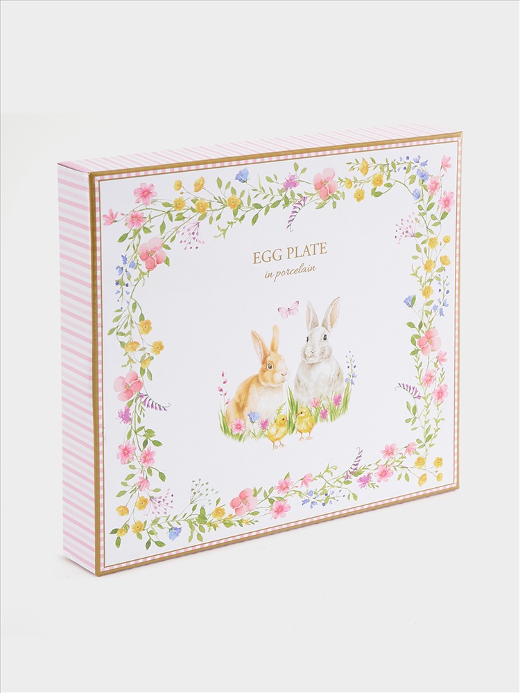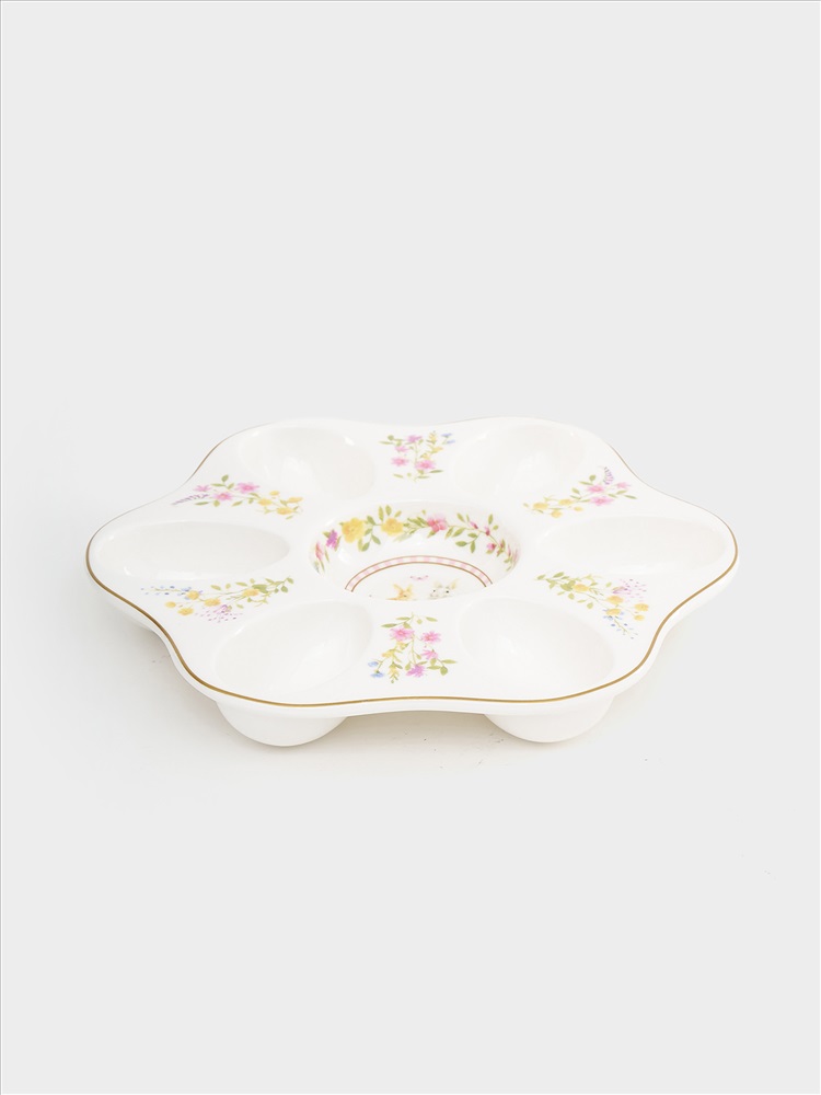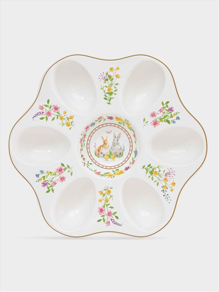 Блюдо для яиц, 21 см, 6 отд, фарфор P, белое, Кролики и цветы, Happy Easter. Материал: фарфор Рorcelain. Мыть теплой водой с применением ЖМС.Можно использовать в СВЧ и мыть в посудомоечной машине.