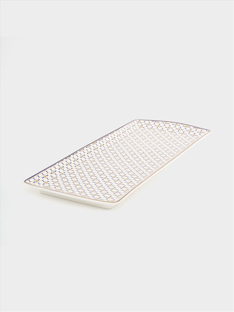 Блюдо. Размер: 35х15 см. Материал: фарфор New Bone China. Соответствует требованиям ГОСТ 28390-89 п.п. 1.2.8, 1.2.14; ГОСТ Р ИСО 6486-2-2007 п.4. Мыть теплой водой с применением жидких моющих средств. Можно использовать в микроволновой печи и посудомоечной машине.