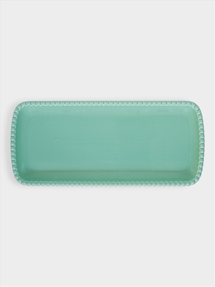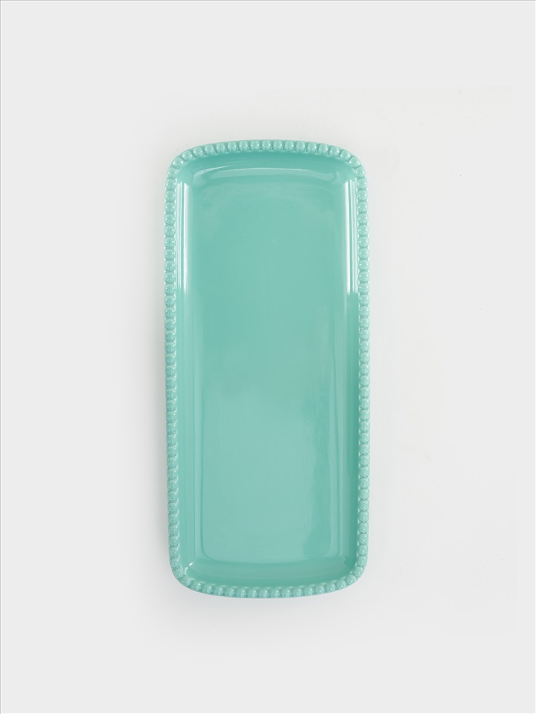 Блюдо, 36х16 см, фарфор P, зелено-голубое, прямоугольное, Бусины, Tiffany. Материал: фарфор Рorcelain. Мыть тёплой водой с применением ЖМС. Можно использовать в СВЧ и посудомоечной машине.