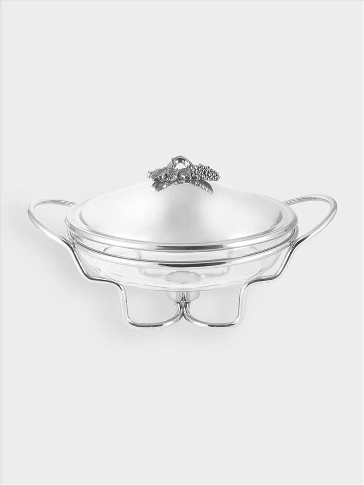 Блюдо с подогревом, круглое. Размер: 35х29х20 см. Объем: 2,5 л. Материал: термостойкое стекло, нержавеющая сталь.Рекомендации по уходу: мыть вручную с применением мягких моющих средств. Не использовать для ухода абразивные чистящие средства и жёсткие губки. Стеклянное блюдо можно мыть в посудомоечной машине на щадящем режиме для стекла. Металлическую часть после мытья вытирать насухо.