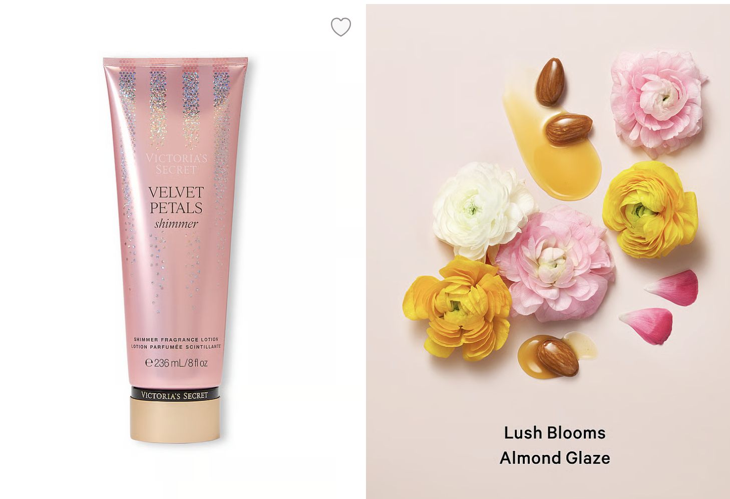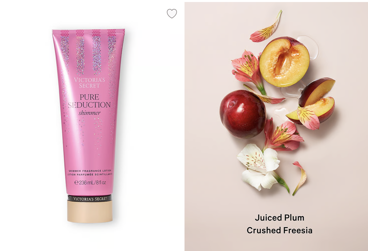 Аромат: Midnight Bloom Shimmer, Amber Romance Shimmer, Pure Seduction, Bare Vanilla, Velvet Petals, Love Spell, Aqua Kiss Shimmer, Coconut Passion Shimmer