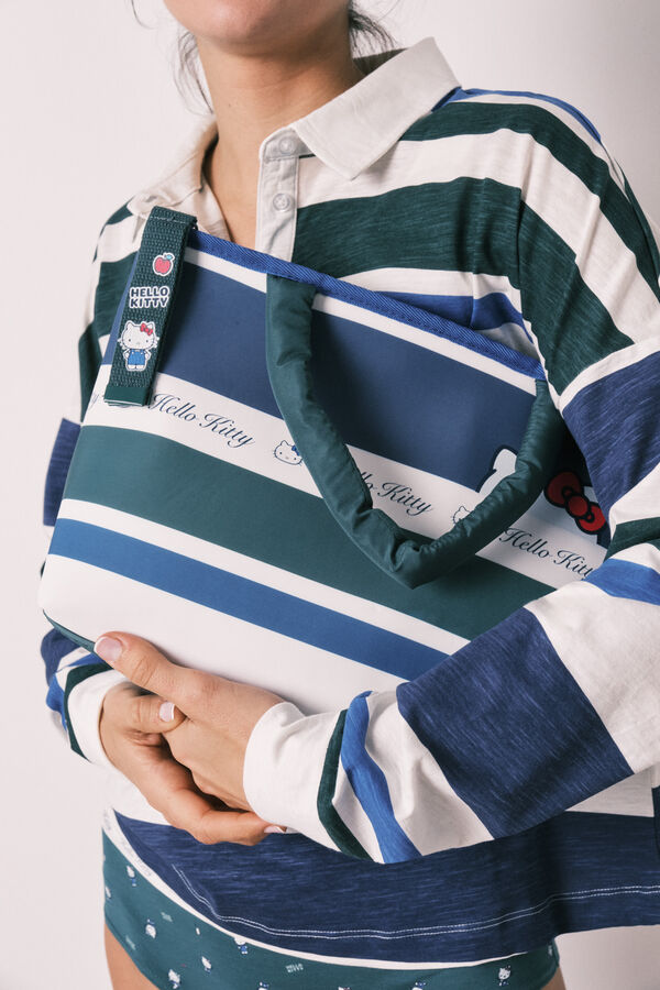 Bolsa térmica porta alimentos (fiambrera o "lunch bag"), con revestimento interior para mantener la temperatura, y exterior de neopreno con estampado de Hello Kitty. Medidas: 23x28x14 cms. Llévatela a juego con algún otro accesorio de la colección.