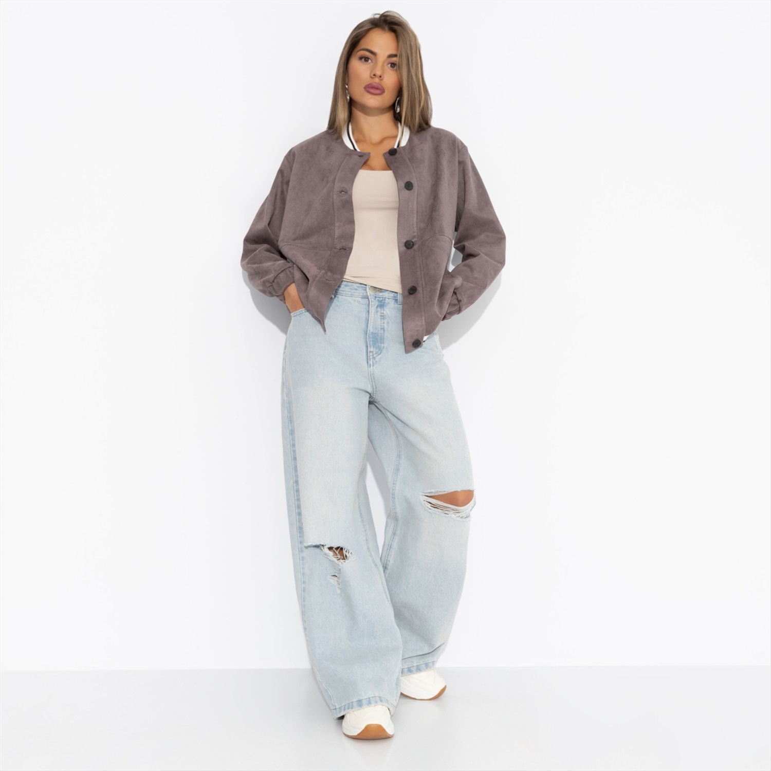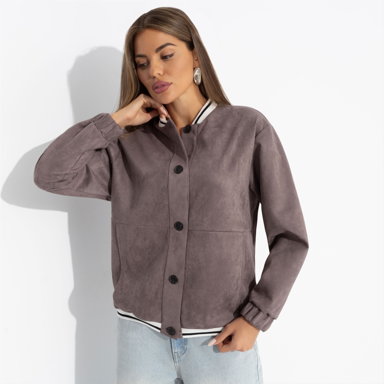 Состав: Замша на скубе (92% полиэстер, 8% спандекс) Плотность ткани: Средняя Тип ткани: Текстиль Вид застежки: Пуговица/-ы Карманы: Накладные Основной цвет ткани: Коричневый Отрезная талия: Нет Подклад: Нет Резинка по талии: Нет Рисунок/раппорт: Нет, все изделия идентичны Сезон: Круглогодичный Силуэт: Свободный Стиль: Повседневный Параметры модели на фото: