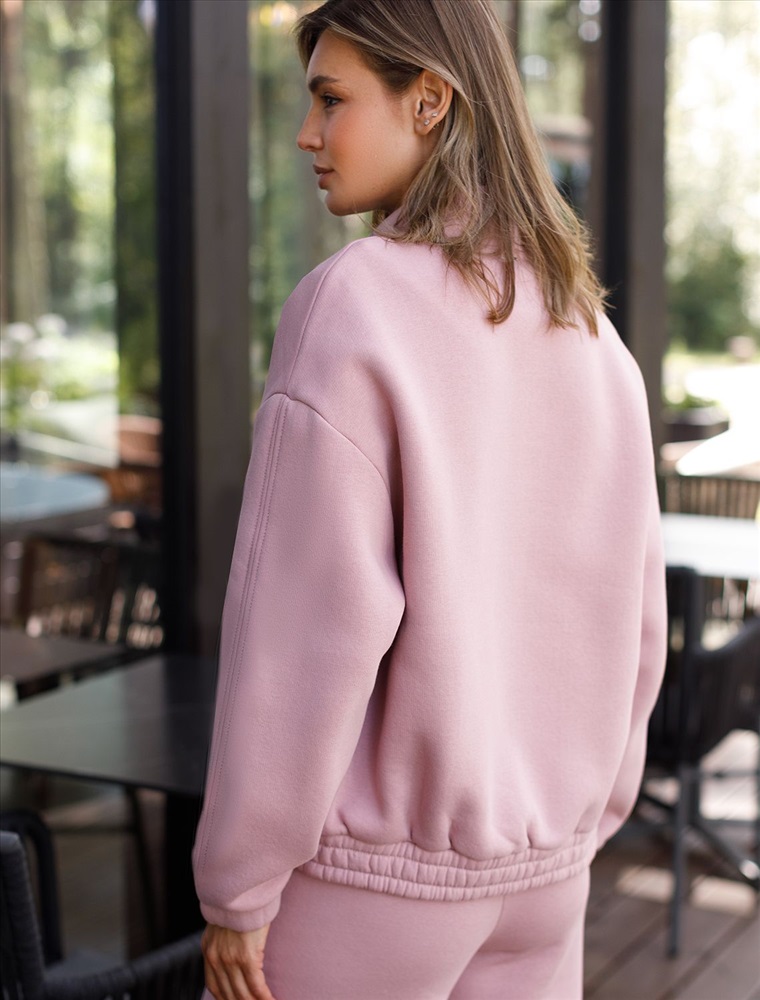 Теплый бомбер пыльно-розового цвета на молнии из футера трехнитки с начесом создан для максимального комфорта в любую погоду. Благодаря натуральному материалу и внутреннему мягкому начесу, повседневный бомбер приятно прилегает к телу и сохраняет тепло даже в прохладные дни. Серебристая фурнитура придает современный акцент, а воротник-стойка защищает от ветра и дополняет стильный внешний вид. Манжеты на рукавах и резинка по низу обеспечивают хорошую посадку по фигуре, предотвращая проникновение холода. Карманы позволяют удобно разместить необходимые мелочи или согреть руки во время прогулок. Спортивный бомбер отличается прочностью ткани, не теряет форму после стирки и долго сохраняет аккуратный первоначальный внешний вид. Модель отличается спущенной линией плеча, что обеспечивает удобную посадку и подчеркивает естественные контуры тела.