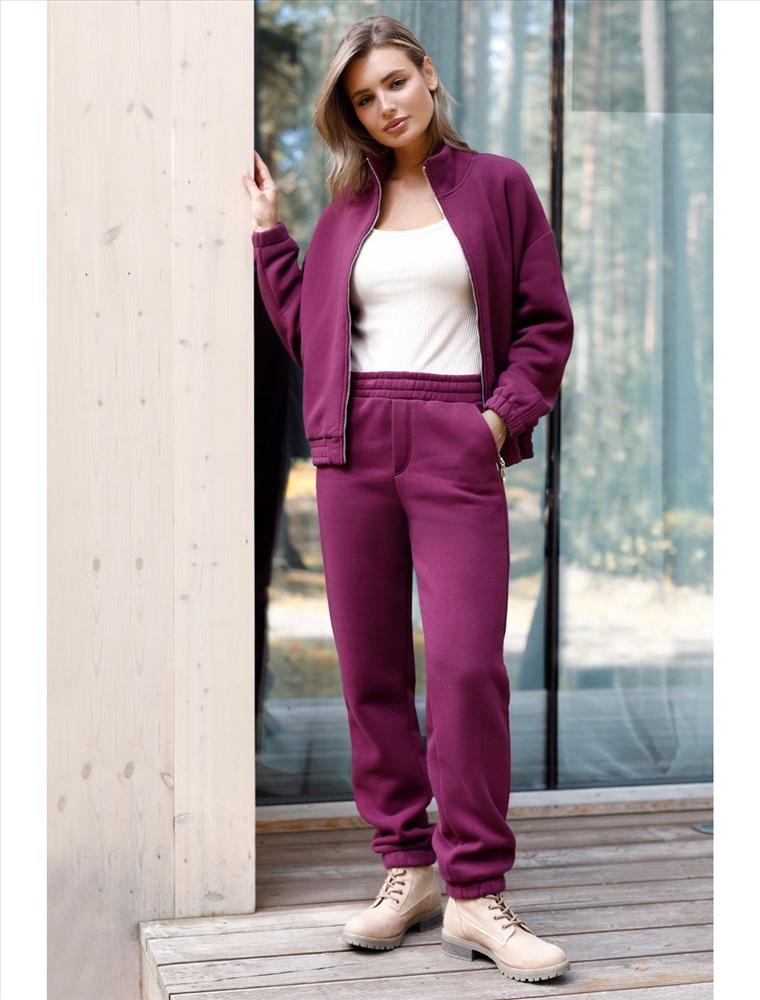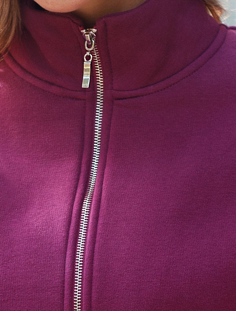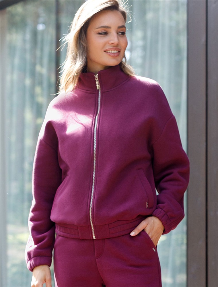 Теплый бомбер пурпурного цвета на молнии из футера трехнитки с начесом создан для максимального комфорта в любую погоду. Благодаря натуральному материалу и внутреннему мягкому начесу, повседневный бомбер приятно прилегает к телу и сохраняет тепло даже в прохладные дни. Серебристая фурнитура придает современный акцент, а воротник-стойка защищает от ветра и дополняет стильный внешний вид. Манжеты на рукавах и резинка по низу обеспечивают хорошую посадку по фигуре, предотвращая проникновение холода. Карманы позволяют удобно разместить необходимые мелочи или согреть руки во время прогулок. Спортивный бомбер отличается прочностью ткани, не теряет форму после стирки и долго сохраняет аккуратный первоначальный внешний вид. Модель отличается спущенной линией плеча, что обеспечивает удобную посадку и подчеркивает естественные контуры тела.