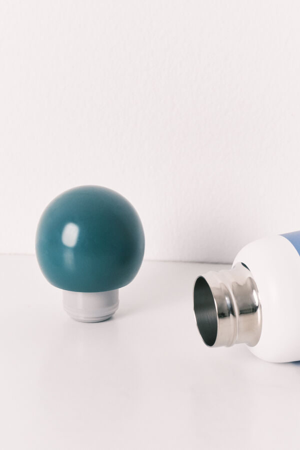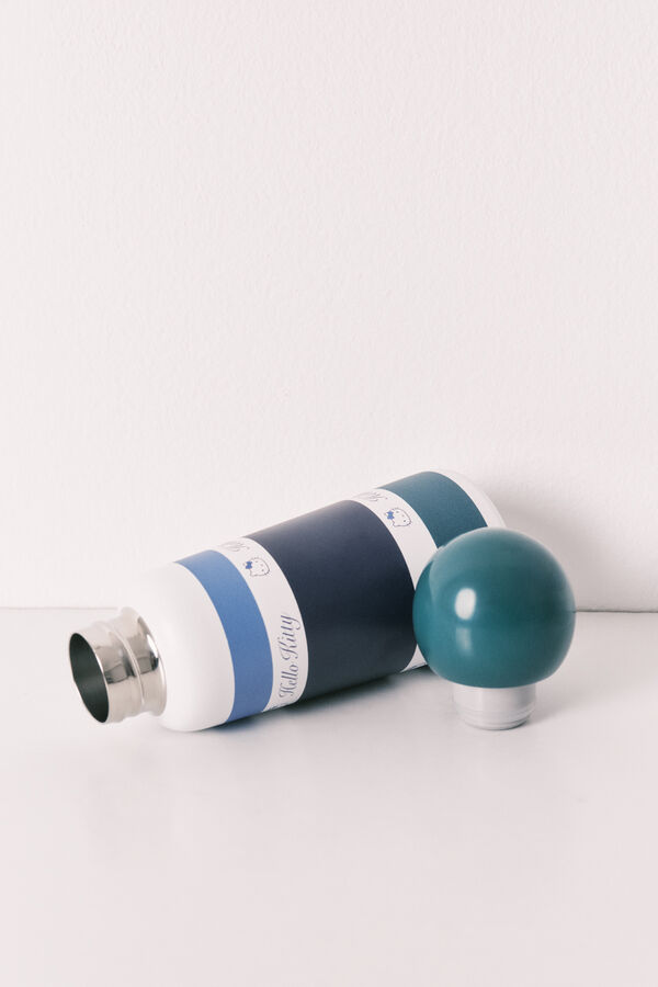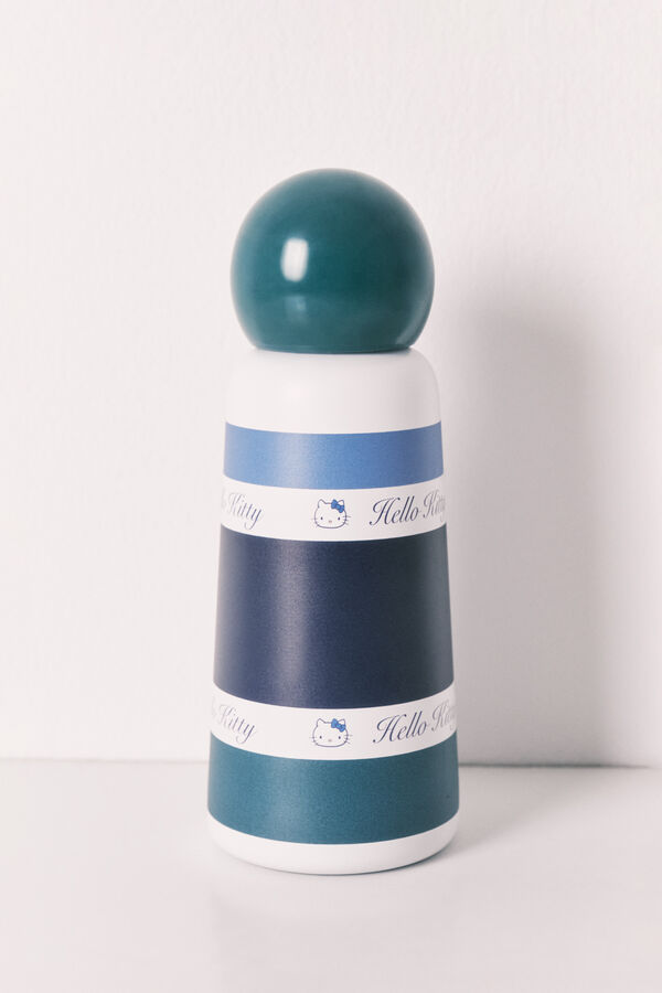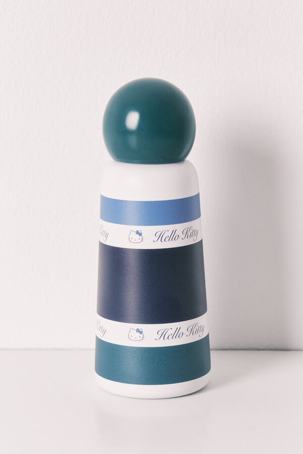 Botella mediana de acero inoxidable con estampado de Hello Kitty y original tapón redondo. Perfecta para llevar siempre contigo y mantenerte hidratada. Llévatela a juego con algún otro accesorio de la colección.