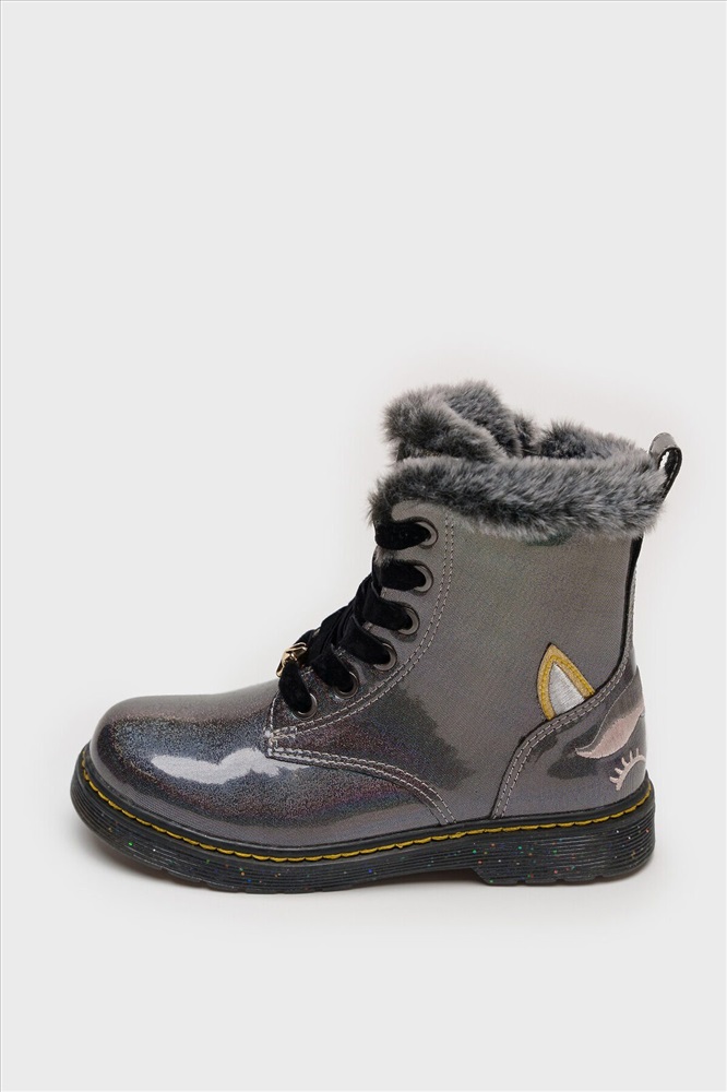 Страна производства: Китай Ботинки детские демисезонные для девочки. Верх обуви выполнен из искусственной лаковой кожи с глитерным эффектом. Отделка искусственным мехом. Сзади вышит милый единорог • Подкладка и съемная стелька выполнены из войлока с высоким содержанием шерсти 80%. • Для основания стельки используется современный дышащий антибактериальный материал HI-POLY, в состав материала входят частички угля, который хорошо абсорбирует неприятный запах. • Формоустойчивый задник поддерживает стопу в правильном положении. • Эргономичная форма колодки обеспечивает правильное формирование стопы ребенка • Модель имеет бархатные шнурки, которые можно завязать красивым бантом, а пользоваться внутренней