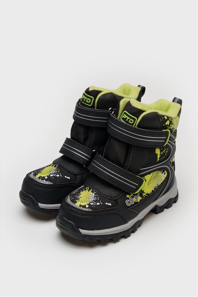 ID товара: 1056063 Состав: 100% Полиэстер. Дополнительный материал- 100% Искусственная кожа Сезон: Осень/Зима Основная ткань: Полиэстер Страна бренда: Германия Страна производства: Китай Ботинки детские зимние с мембраной для мальчика. Конструкция верха изготовлена с использованием мембранных технологий. Усиленная защита носка и пятки специальными материалами. Подкладка и стелька выполнены из шерстяного меха 80%. Трехслойная стелька с фольгой, которая обеспечивает сохранение тепла в течение длительного времени. Формоустойчивый задник поддерживает стопу в правильном положении. Подошва имеет противоскользящий протектор. Удобная застежка-липучка. Рекомендованный температурный режим ( зависит от активности ребенка и поддевы под обувь) ( зависит от активности ребенка и поддевы под обувь) от 0°С до -20°С. Комментарии к товару
