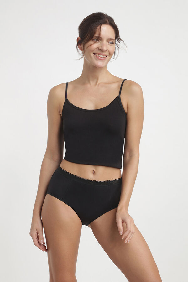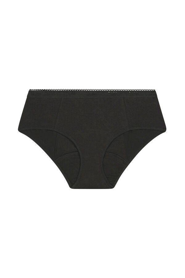 DIM PROTECT es una braga innovadora que proporciona la protección necesaria hasta 12h, durante todo el ciclo menstrual. Se puede usar como método exclusivo o como complemento de tampones o copas. Olvidas que los estás usándolo. Tejido de algodón suave en contacto directo con la piel. Absorbe el Flujo en el interior gracias a un tejido específicamente diseñado. A prueba de fugas, neutraliza el olor. Producto probado y certificado por laboratorios independientes que cumple con la legislación sobre sustancias seguras. DIM PROTECT es una alternativa segura, sostenible y cómoda. Respeta tu intimidad. Discreción total. Se puede usar para la práctica deportiva. DIM PROTECT Flujo Abundante tiene una zona de protección más amplia, cubre más en la parte posterior de la prenda. USO: Hasta 12 horas de uso durante el día y la noche. Como método exclusivo o como complemento de tampones o copas. Para la práctica deportiva. La absorción de DIM PROTECT está garantizada hasta el final de vida del producto. LAVADO: 1. Enjuague con agua fría. 2. Lavar a mano o en lavadora a 30°. 3. Secar al aire. SOSTENIBILIDAD: DIM PROTECT es una braga lavable por lo tanto, es una alternativa a las protecciones de un solo uso y ayuda a reducir los desechos. Reduce la huella de carbono, es un producto reutilizable. Es una alternativa segura, sostenible y cómoda.
