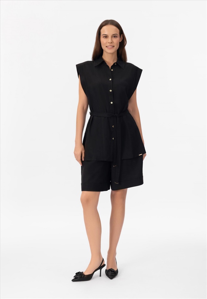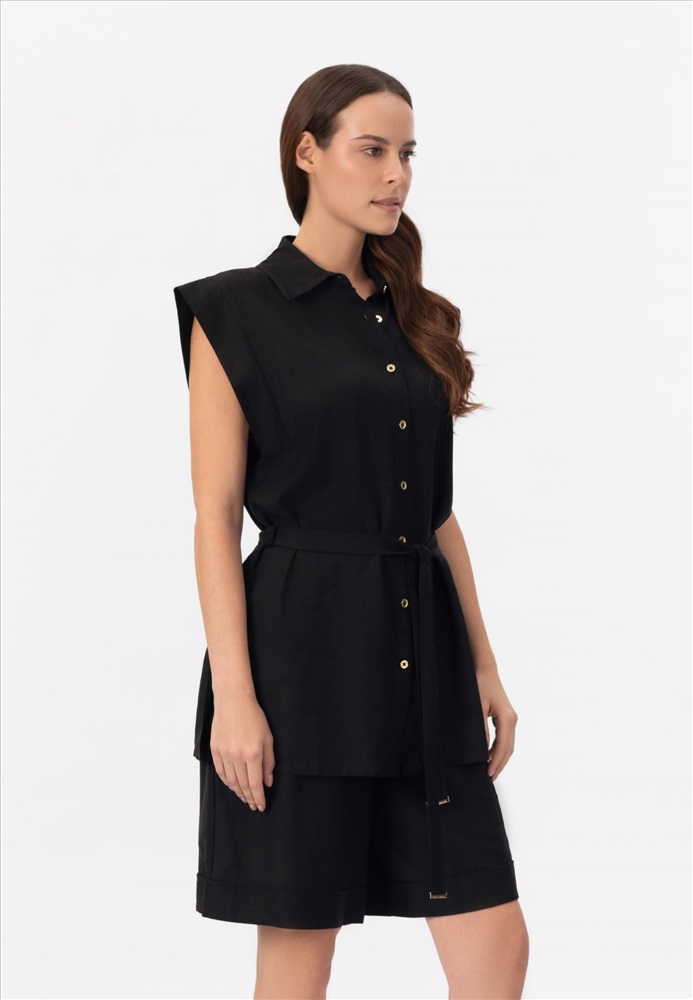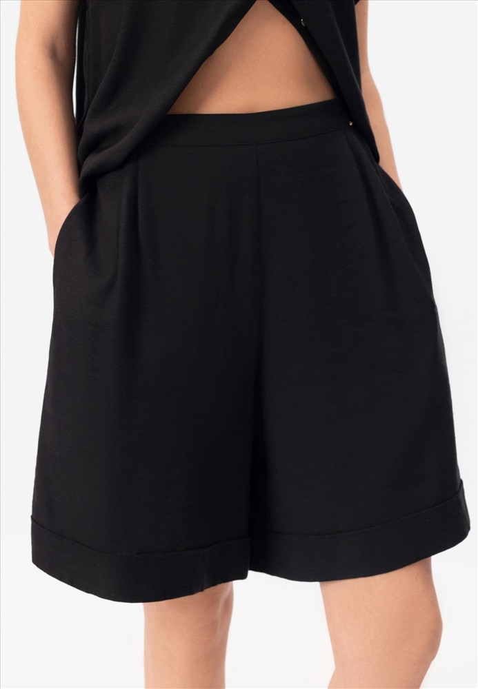Шорты-бермуды изо льна и вискозы. Завышенная линия талии. Боковые карманы.
