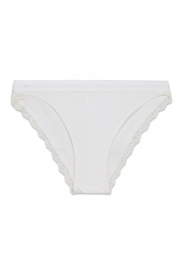 Braga clásica confeccionada con algodón, en textura de canalé, con detalle de goma elástica en la cinturilla con logo y encaje en la parte trasera. Combínala con su parte de arriba a juego para lucir el conjunto completo.