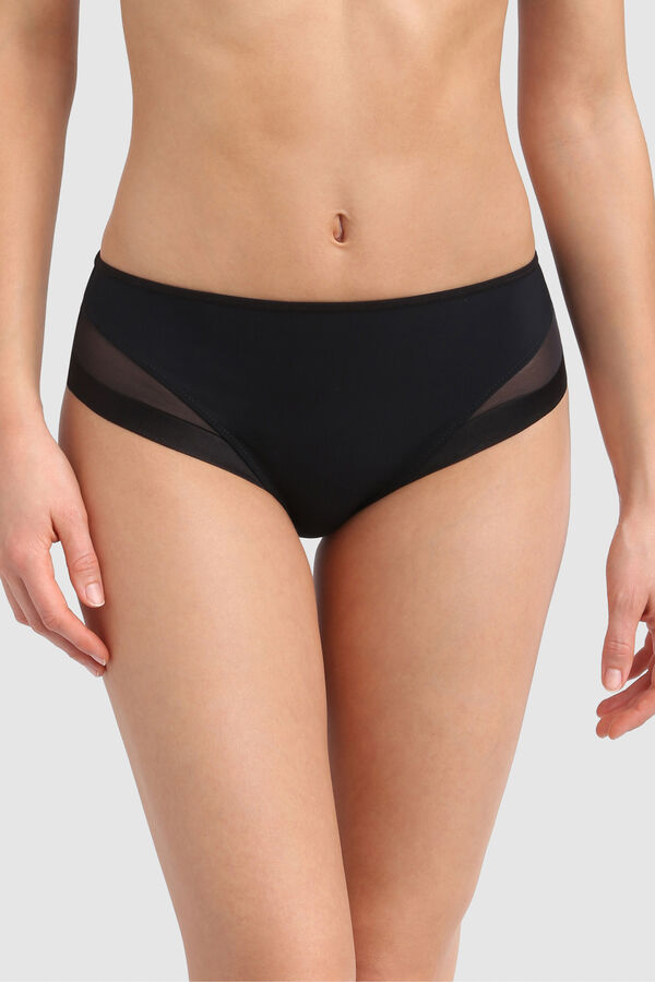 Corte moderno. Tejido de tul en la parte trasera y delantera para conseguir que sea invisible bajo la ropa. Entrepierna de algodón para mayor comodidad.