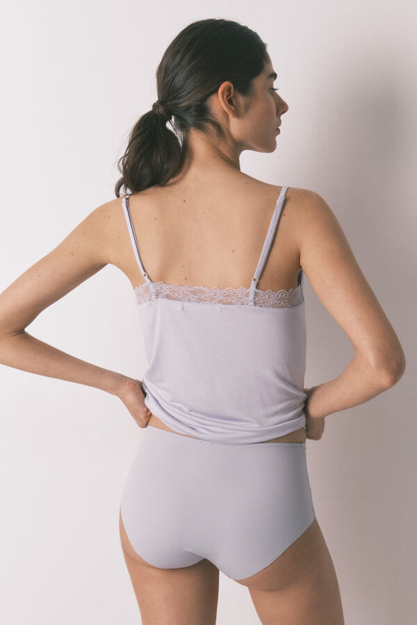 Braga alta de control semi-moldeadora con efecto reductor, forro de tul en el delantero y detalle de trasparencias en tul en los laterales. Estiliza tu silueta y es perfecta para llevar bajo las prendas que más se ciñen al cuerpo. Combina con la parte de arriba que más te guste.