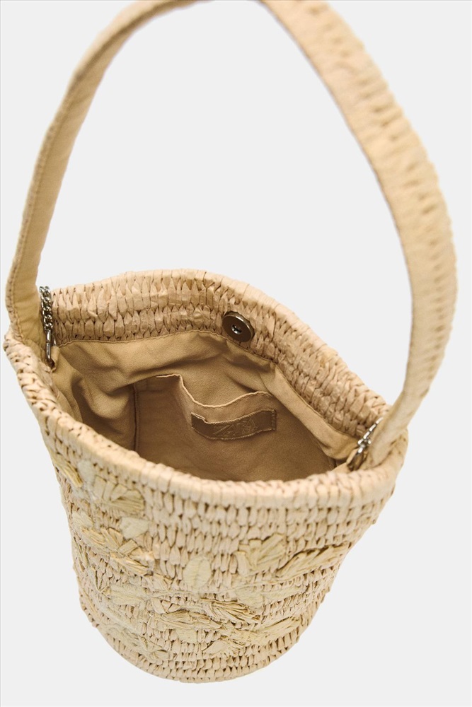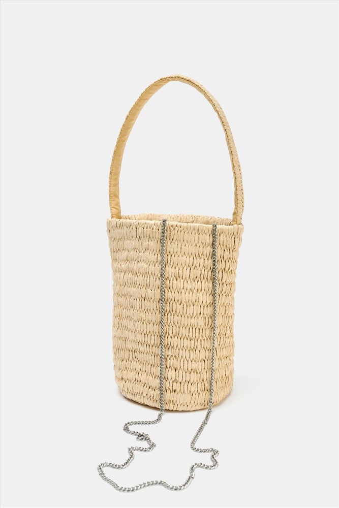 Braided basket bag. Design detailing on the top in a contrasting material. Detachable metal shoulder strap. Interior pocket. Magnetic closure. COMPOSITION, CARE & ORIGIN COMPOSITION OUTER SHELL MAIN FABRIC 100% paper SHOULDER STRAP 100% iron BASE MATERIAL 65% paper LINING 100% polyester Which contains at least: OUTER SHELL BASE MATERIAL 35% RCS certified recycled cotton LINING 100% RCS certified recycled polyester CERTIFIED MATERIALS RCS CERTIFIED RECYCLED POLYESTER Nowadays, recycled polyester is mainly made from PET plastic waste. This is a type of plastic that is widely used in a variety of items, such as plastic bottles. Using recycled materials helps limit the production of virgin polyester fibre. It is certified to the Recycled Claim Standard (RCS), which verifies the recycled content and tracks it from source to final product. Certified by Intertek 193334 More information RCS CERTIFIED RECYCLED COTTON This fibre is made from recycled cotton textile waste. Using recycled materials helps limit the consumption of raw materials. It is certified to the Recycled Claim Standard (RCS), which verifies the recycled content and tracks it from source to final product. Certified by Intertek 193334 More information CARE Caring for your garments to extend their useful life. Simple steps like cleaning your items with a dry cotton cloth or a soft brush, depending on the characteristics of the product, can help you care for it.