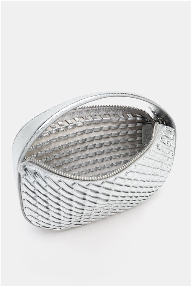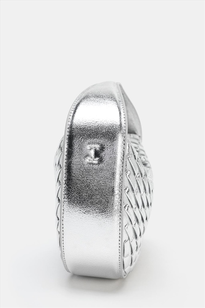 Metallic-effect braided handbag. Wide handle. Detachable crossbody strap. Metal zip fastening. COMPOSITION, CARE & ORIGIN COMPOSITION OUTER SHELL 100% polyurethane LINING 100% polyester Which contains at least: LINING 100% RCS certified recycled polyester CERTIFIED MATERIALS RCS CERTIFIED RECYCLED POLYESTER Nowadays, recycled polyester is mainly made from PET plastic waste. This is a type of plastic that is widely used in a variety of items, such as plastic bottles. Using recycled materials helps limit the production of virgin polyester fibre. It is certified to the Recycled Claim Standard (RCS), which verifies the recycled content and tracks it from source to final product. Certified by Intertek 193334 More information CARE Caring for your garments to extend their useful life. Simple steps like cleaning your items with a dry cotton cloth or a soft brush, depending on the characteristics of the product, can help you care for it.