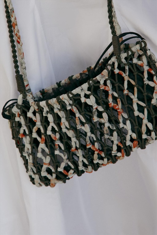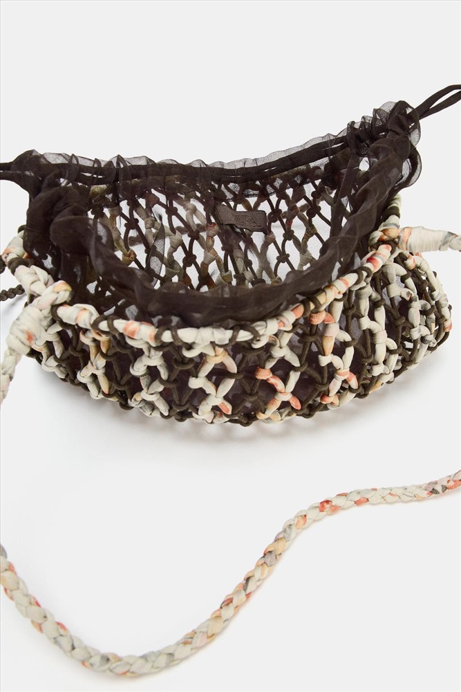 Braided mini shoulder bag. Combination of colours and materials on the top. Shoulder strap. Inner mesh bag with gathered closure. COMPOSITION, CARE & ORIGIN COMPOSITION OUTER SHELL MAIN FABRIC 100% polyester SECONDARY FABRIC 100% cotton LINING 100% polyester Which contains at least: OUTER SHELL MAIN FABRIC 100% RCS certified recycled polyester LINING 100% RCS certified recycled polyester CERTIFIED MATERIALS RCS CERTIFIED RECYCLED POLYESTER Nowadays, recycled polyester is mainly made from PET plastic waste. This is a type of plastic that is widely used in a variety of items, such as plastic bottles. Using recycled materials helps limit the production of virgin polyester fibre. It is certified to the Recycled Claim Standard (RCS), which verifies the recycled content and tracks it from source to final product. Certified by Intertek 193334 More information CARE Caring for your garments to extend their useful life. Simple steps like cleaning your items with a dry cotton cloth or a soft brush, depending on the characteristics of the product, can help you care for it.