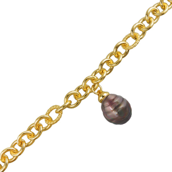 Изготовлено из ювелирного сплава на основе латуни с гальваническим покрытием золотом. Изделие украшает майорский барочный жемчуг шоколадного цвета диаметром 14мм. Длина браслета 18см. Застёжка в форме якоря с удлинителем 5см.