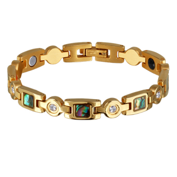 Изготовлено из ювелирного сплава на основе латуни с гальваническим покрытием золотом. Изделие украшает гелиотис. Ширина 0.7см.
