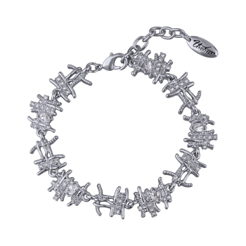 Изготовлено из ювелирного сплава на основе латуни с гальваническим покрытием родием. Изделие украшают кристаллы SW белого цвета. Длина 17см. Замок-карабин с удлинителем 3см.