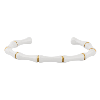 Изготовлено из ювелирного сплава на основе латуни с гальваническим покрытием золотом. Изделие украшает белая эмаль. Ширина 3мм.