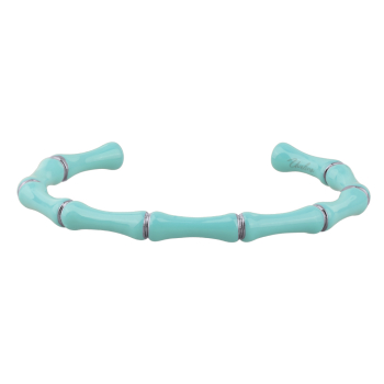 Изготовлено из ювелирного сплава на основе латуни с гальваническим покрытием родием. Изделие украшает эмаль цвета морская свежесть. Ширина 6мм.