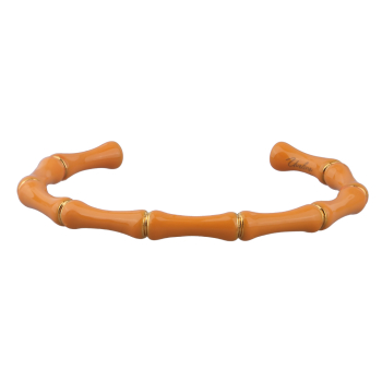 Изготовлено из ювелирного сплава на основе латуни с гальваническим покрытием золотом. Изделие украшает оранжевая эмаль. Ширина 6мм.