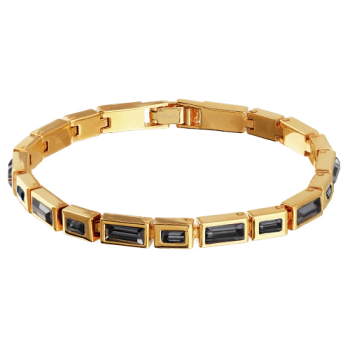 Изготовлено из ювелирного сплава на основе латуни с гальваническим покрытием золотом. Изделие украшают кристаллы SW темно-серого цвета. Длина 17-20см. Ширина 5мм.